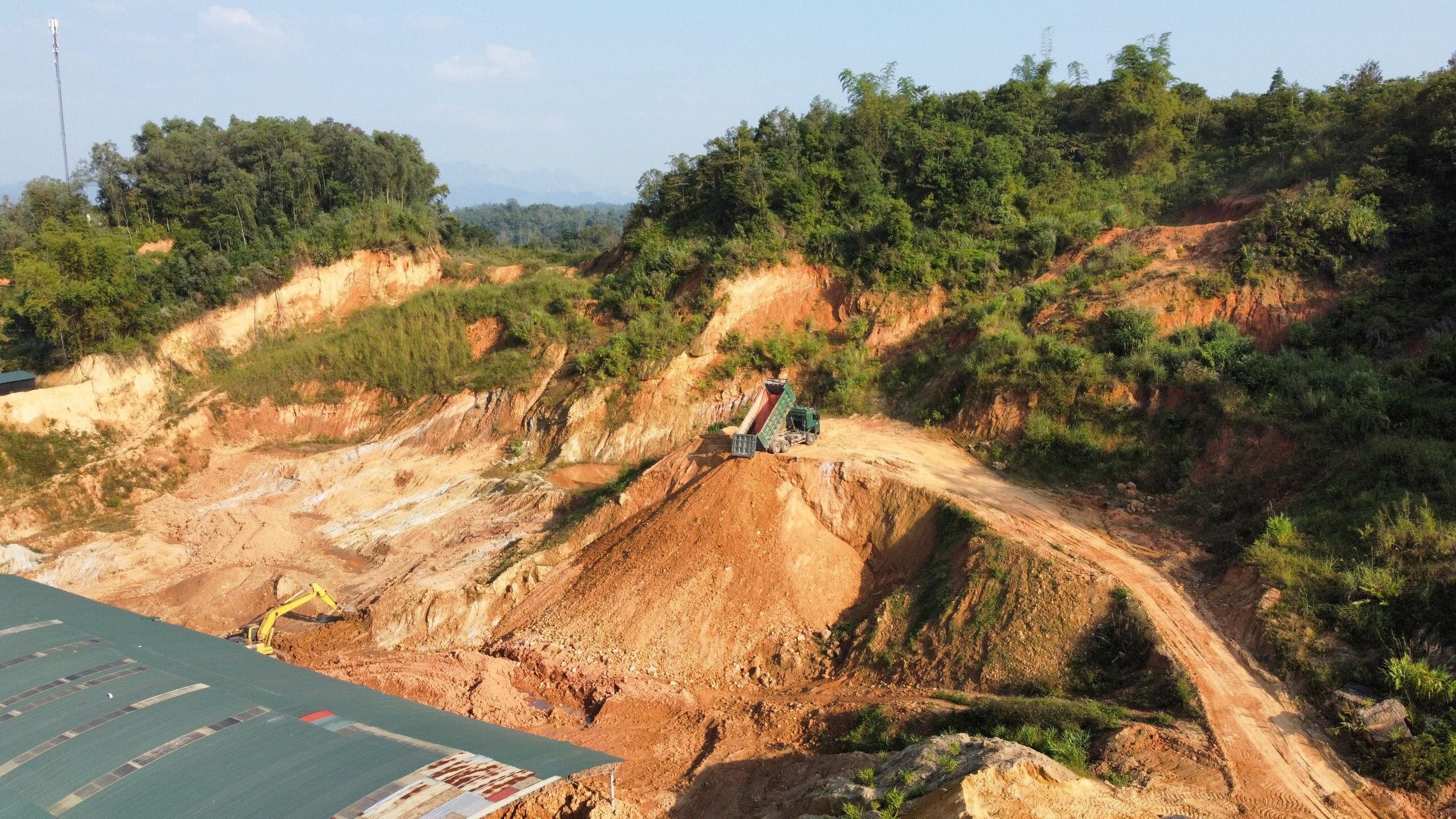 Ngày 28/10, có mặt tại vị trí được phản ánh, phóng viên ghi nhận có 2 máy múc đang hoạt động hết công suất, cùng với đó là hàng dài những chiếc xe đang chờ ăn đất. Sau đó, các xe tải này chở đất ra vào liên tục nhưng không có biện pháp nào xử lý bụi, vệ sinh bánh xe nhằm đảm bảo môi trường.