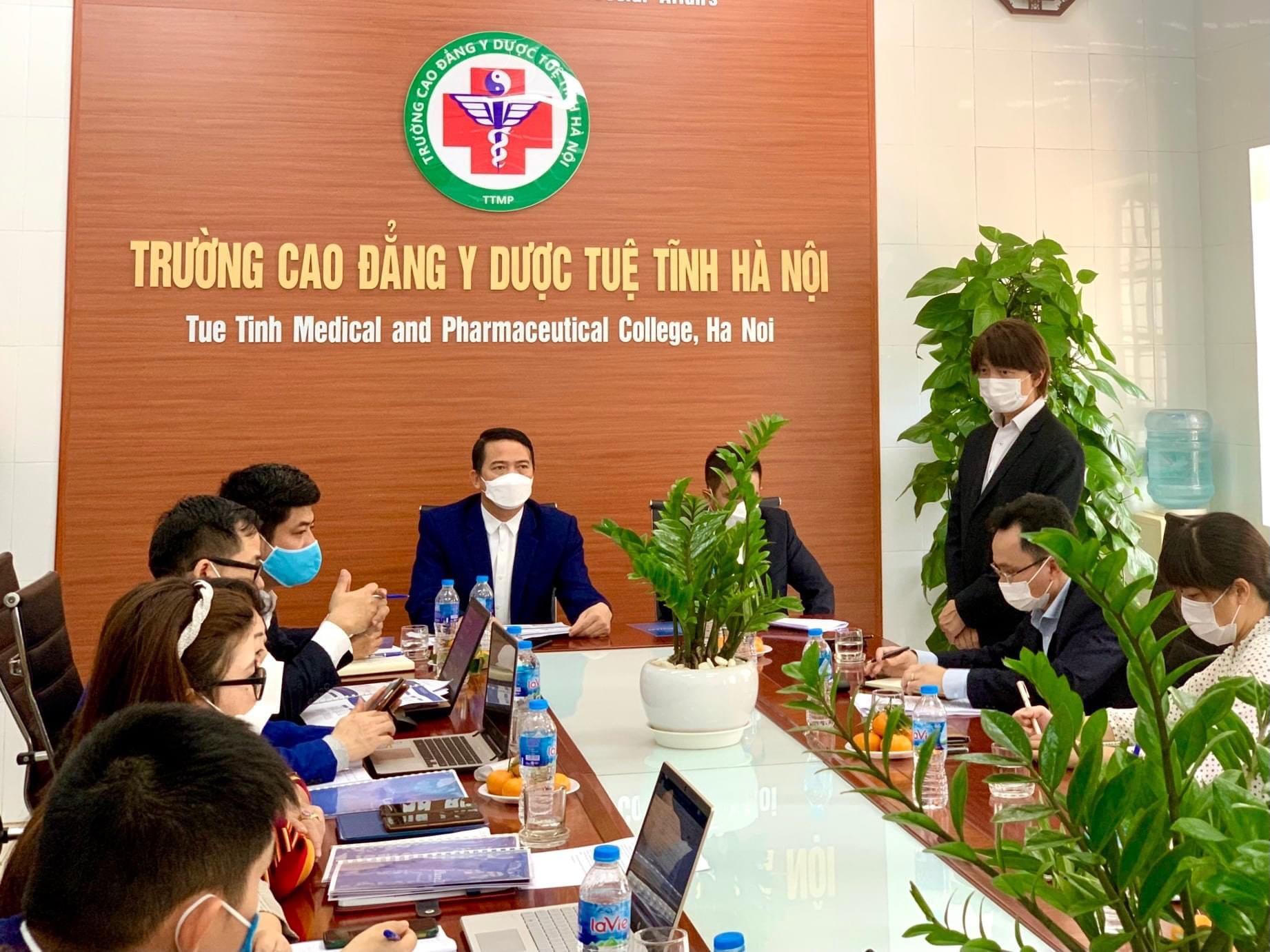 Trường Cao đẳng Y dược Tuệ Tĩnh Hà Nội đang diễn ra buổi hội thảo với một tổ chức quốc tế. |