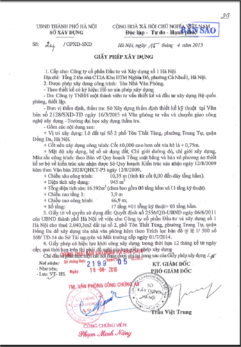 Ngày 15/4/2015 Sở Xây dựng TP. Hà Nội cấp phép xây dựng dự án Tòa nhà văn phòng Eurowindow cho Công ty Cổ phần Đầu tư và Xây dựng số 1 Hà Nội theo Giấy phép xây dựng số 24/GPXD – SXD.