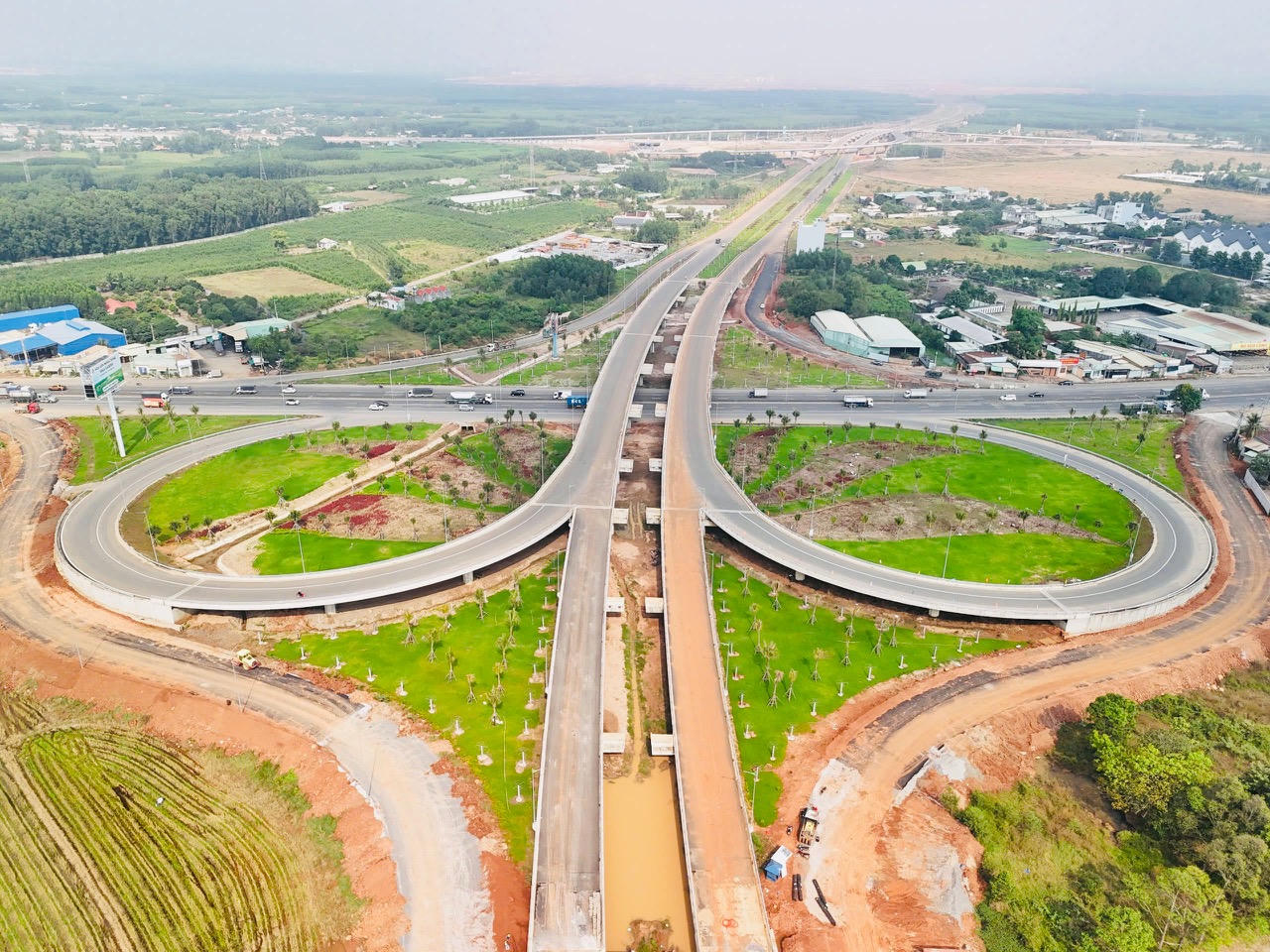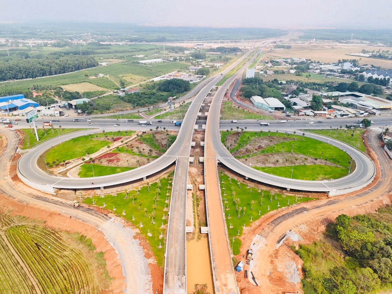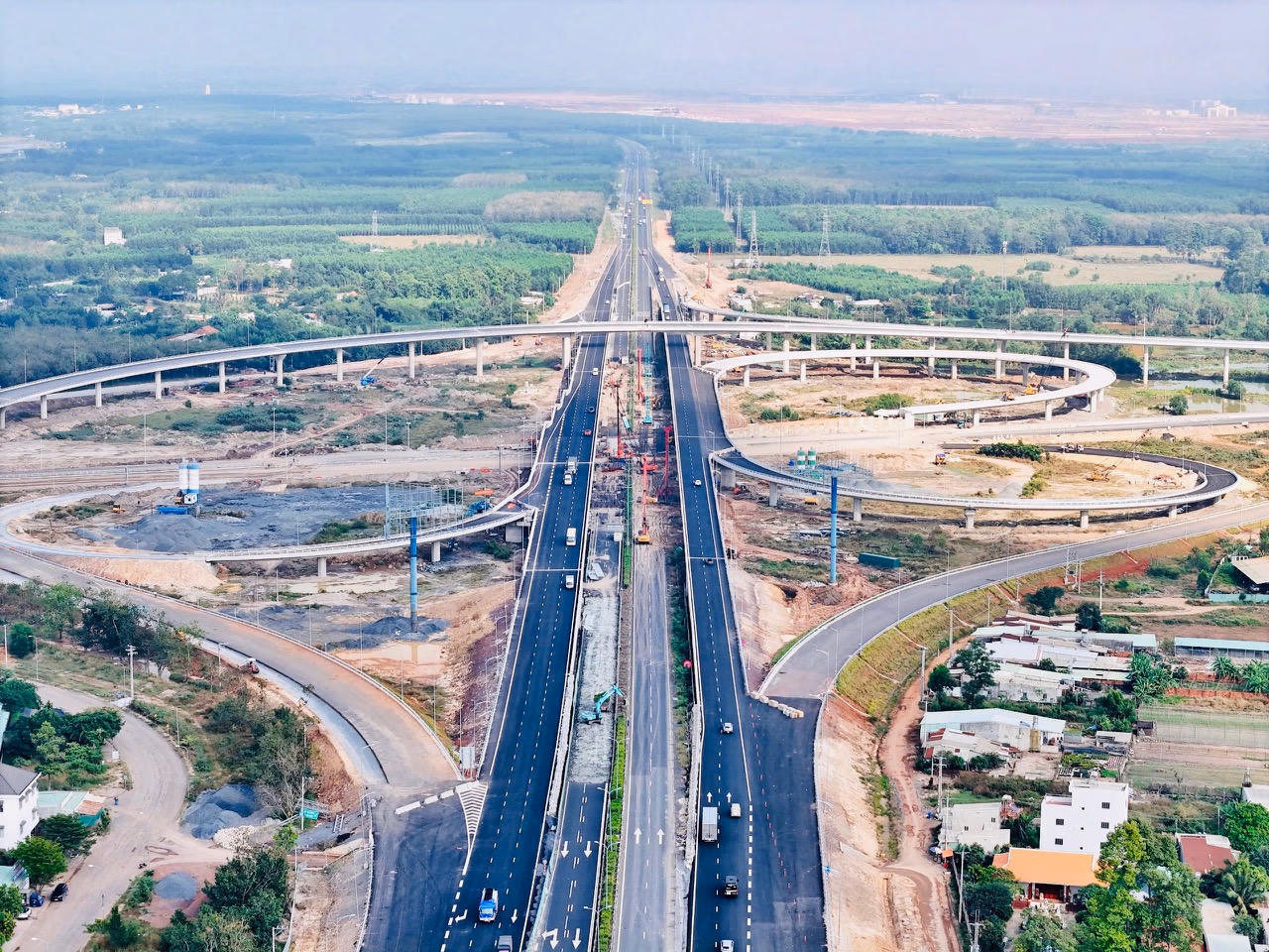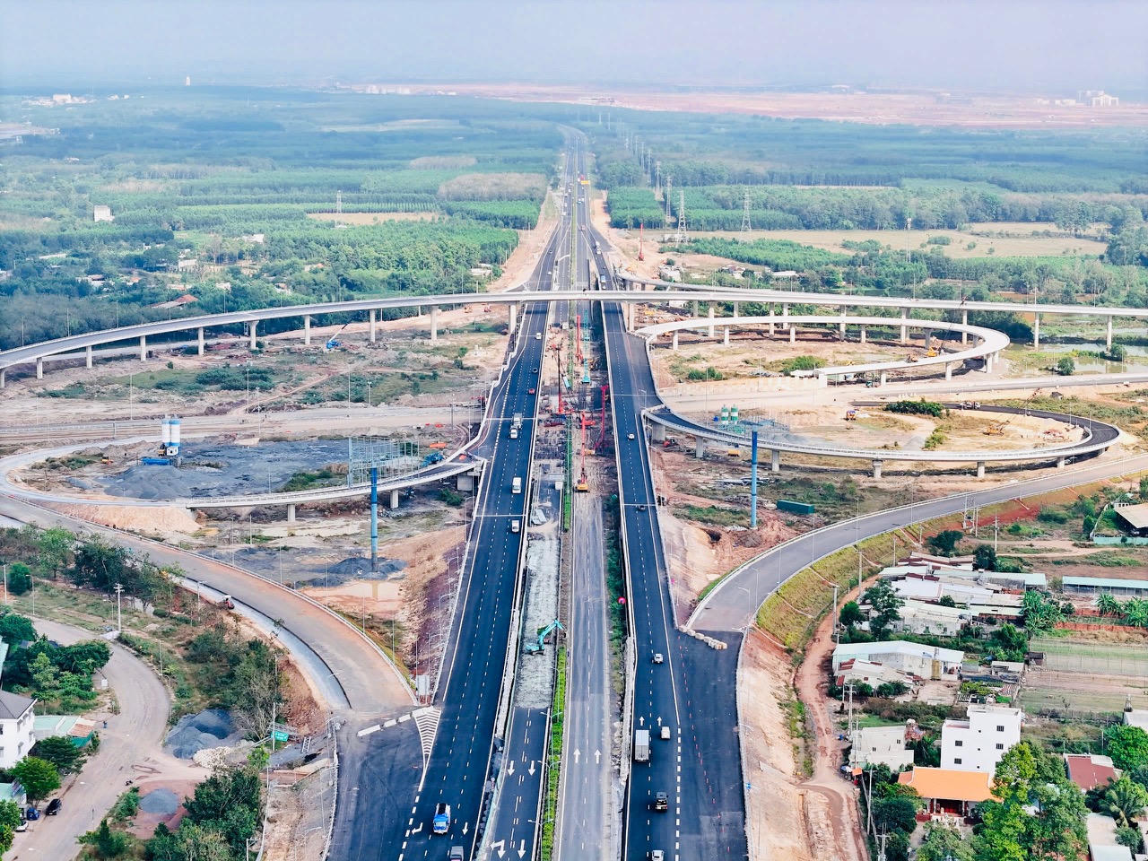 Tại các nút giao lớn như Long Thành, sân bay, Tân Hiệp, công trường lúc nào cũng đông nghịt. Máy móc và công nhân làm việc đan xen giữa tuyến chính và các nhánh kết nối. Có đoạn, các đội thi công chia nhau làm cả ngày lẫn đêm để kịp ghép nối đồng bộ với đoạn tuyến phía Bà Rịa - Vũng Tàu cũ.