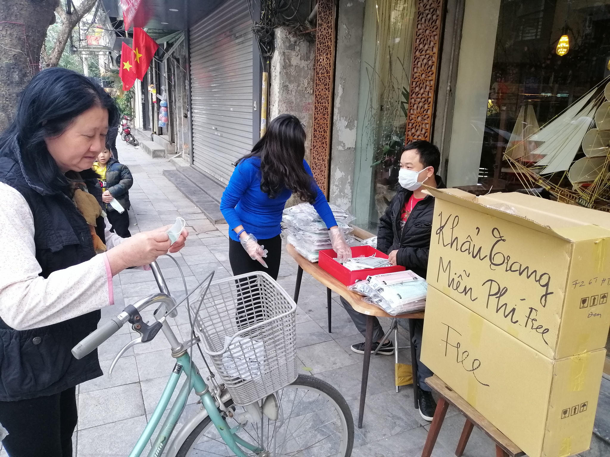 Cặp đôi Hà Nội phát khẩu trang miễn phí cho người qua đường