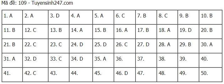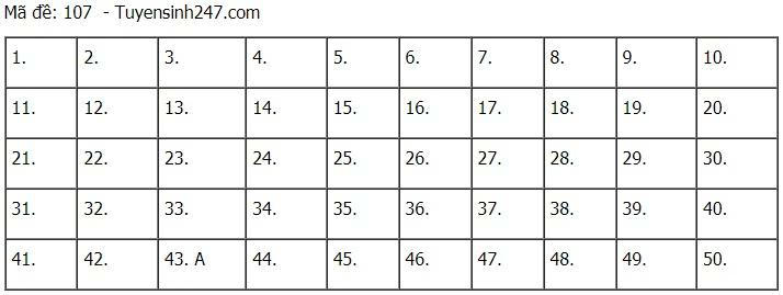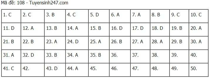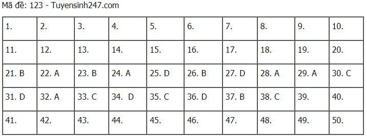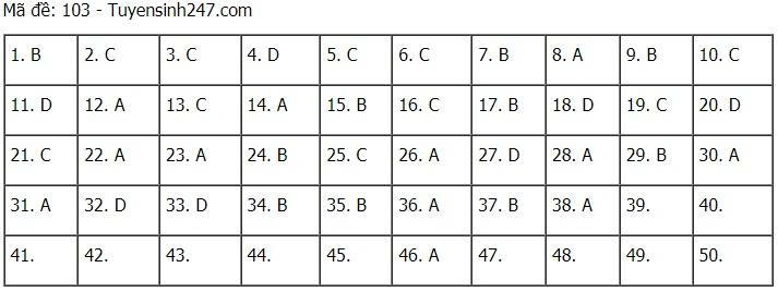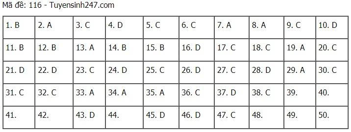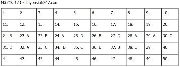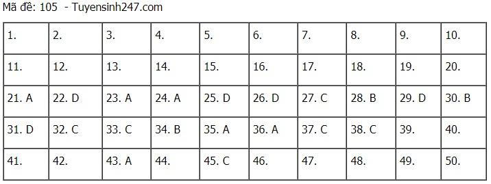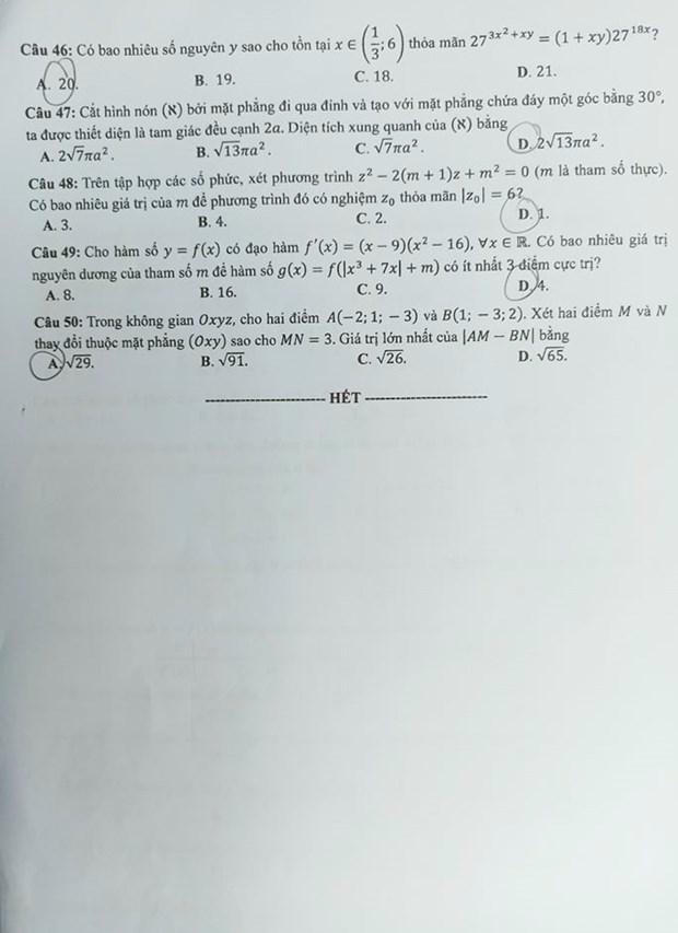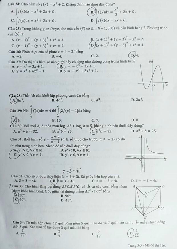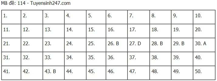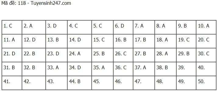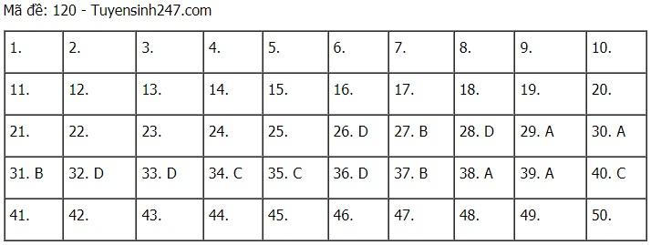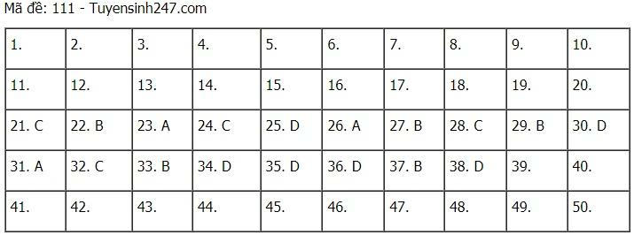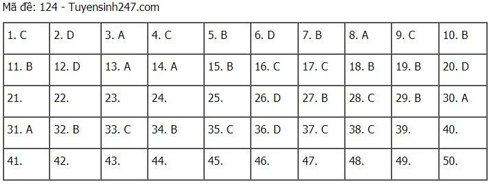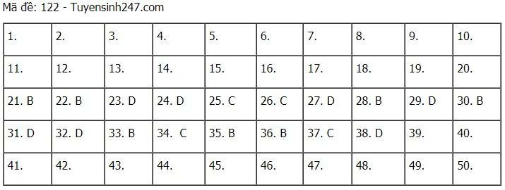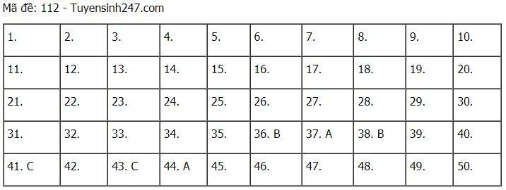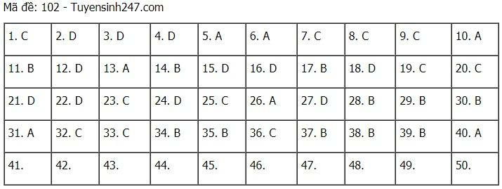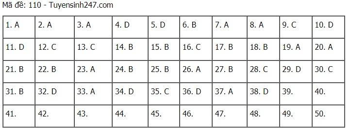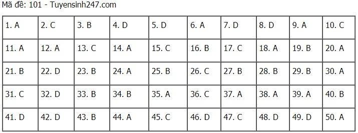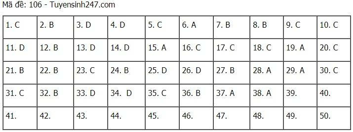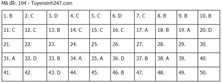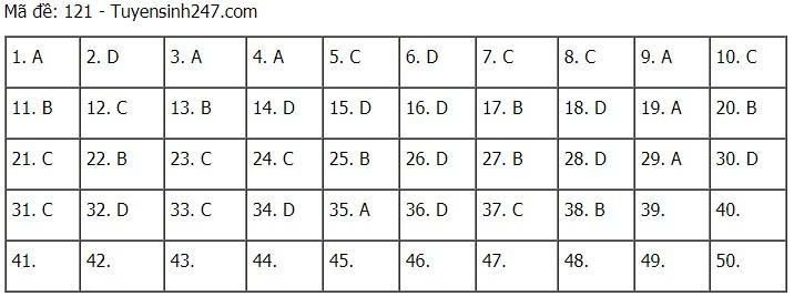 Đáp án môn Toán thi tốt nghiệp THPT 2021: