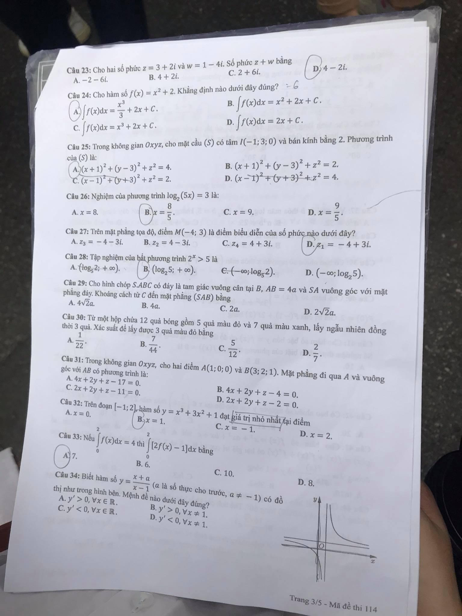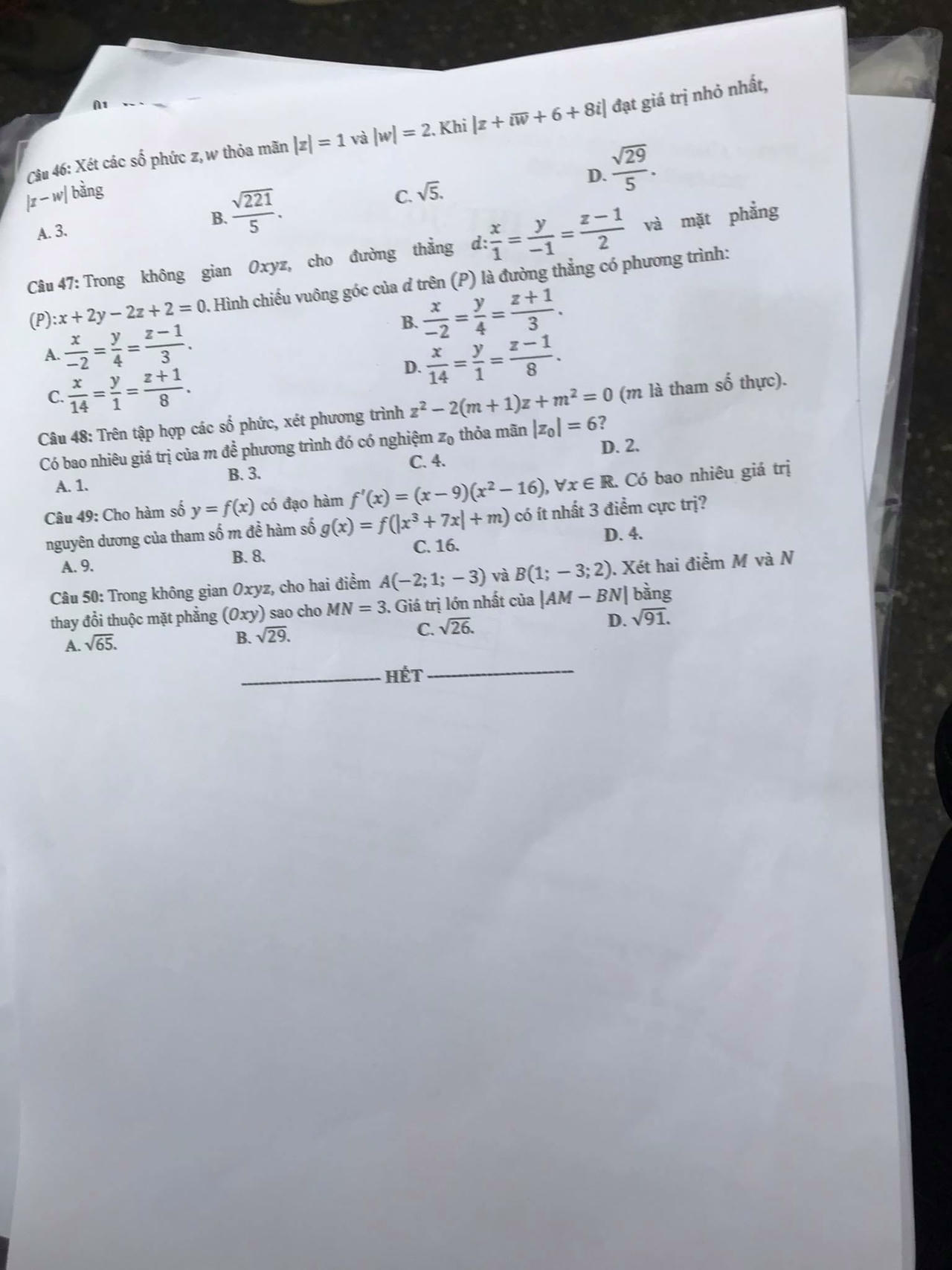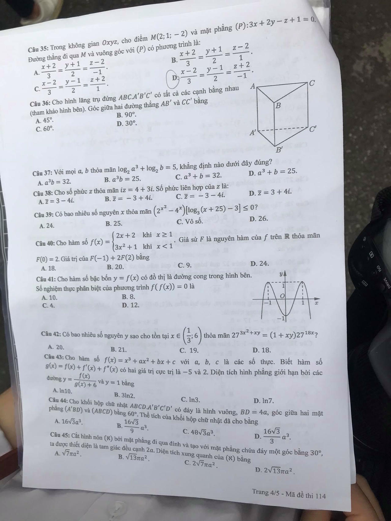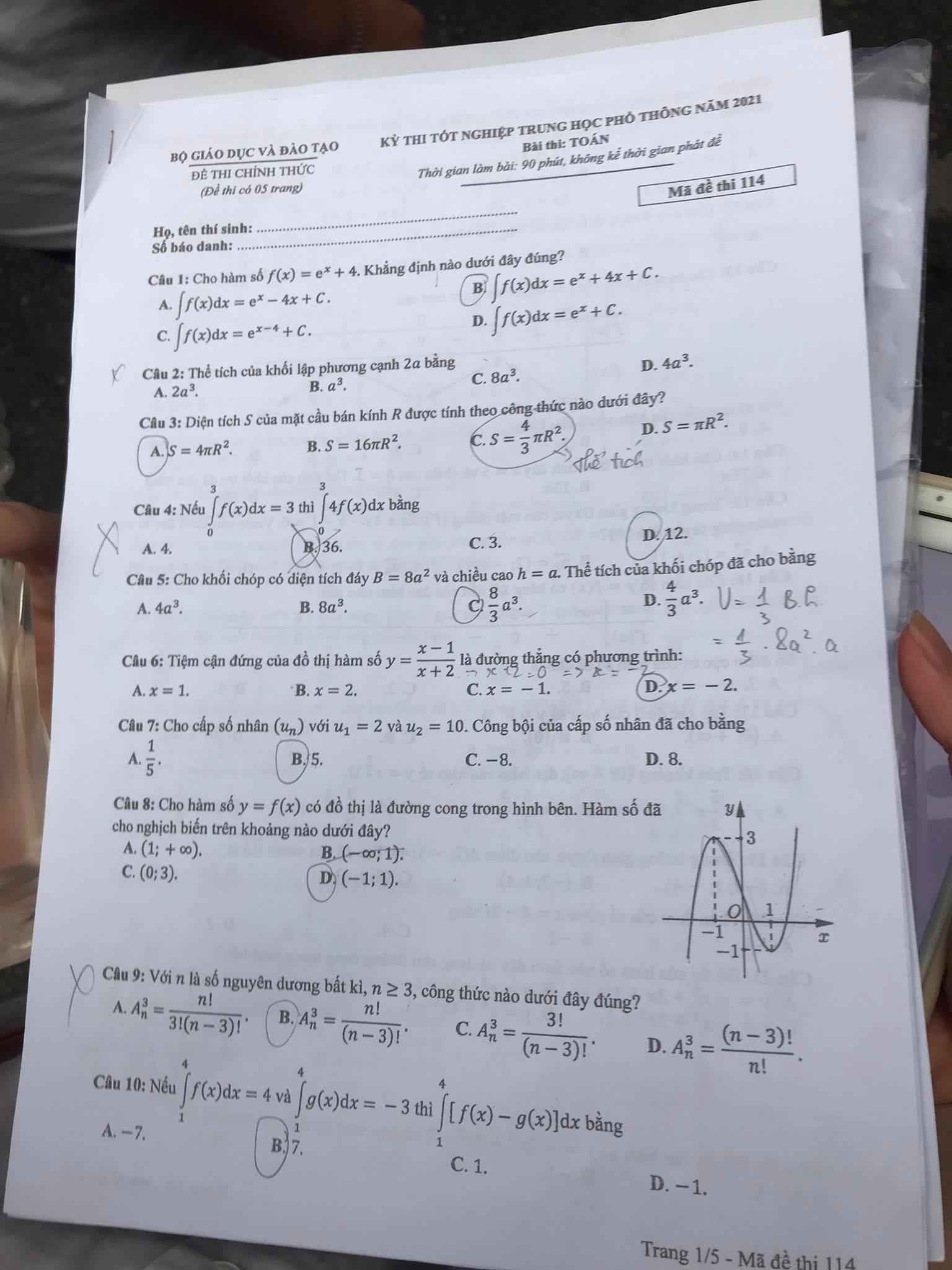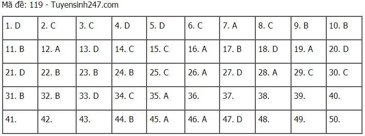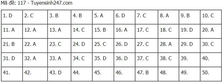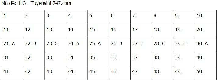 Đáp án môn Toán thi tốt nghiệp THPT 2021: