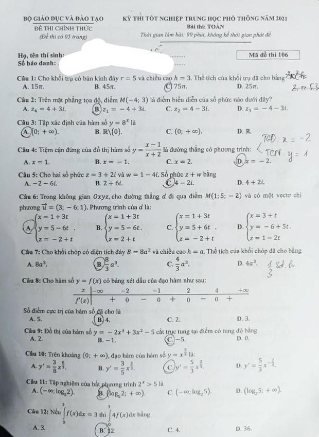 Cập nhật đề thi và đáp án môn Toán tốt nghiệp THPT năm 2021