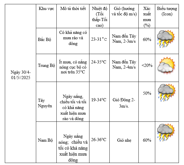 Dự báo thời tiết dịp lễ 30/4-4/5: