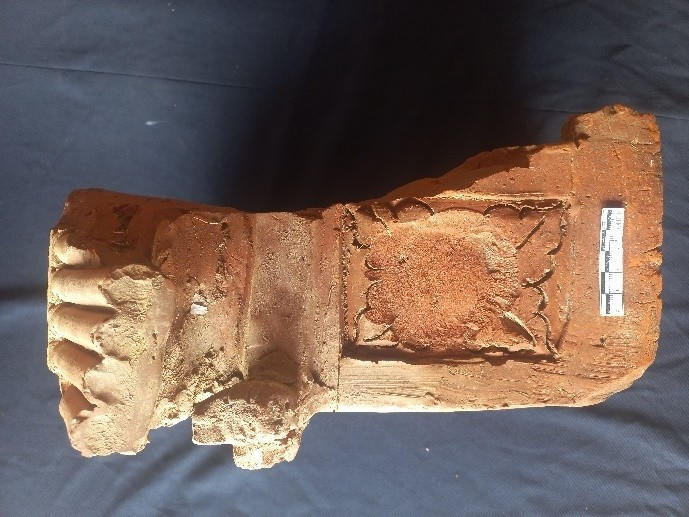 Ngói mũi nhọn khai quật được tại nền chùa Ba Tự. Ảnh: T.H |