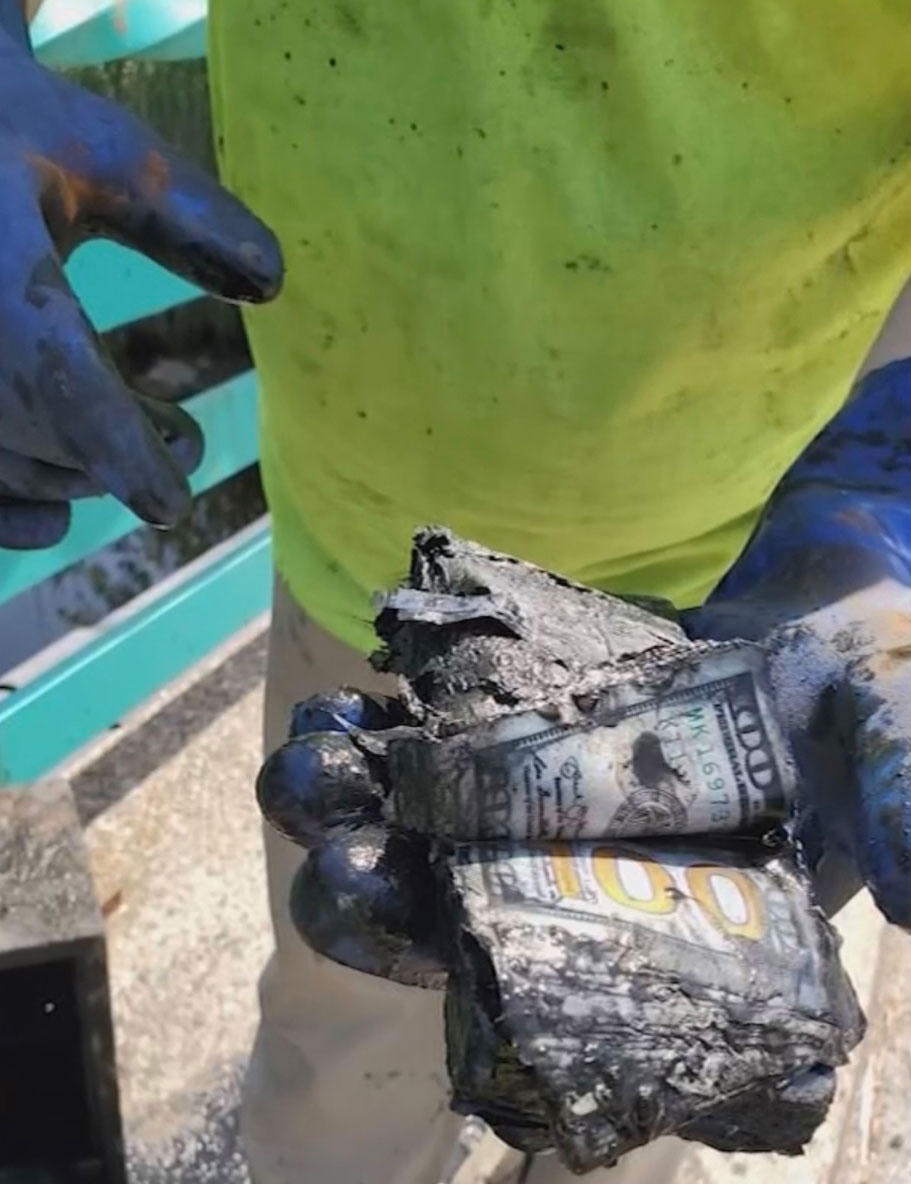 Khi mở ra, họ kinh ngạc phát hiện bên trong két có nhiều túi ni lông chứa đầy tiền mặt, với nhiều tờ tiền mệnh giá 100 USD. Tổng số tiền ước tính khoảng 100.000 USD.