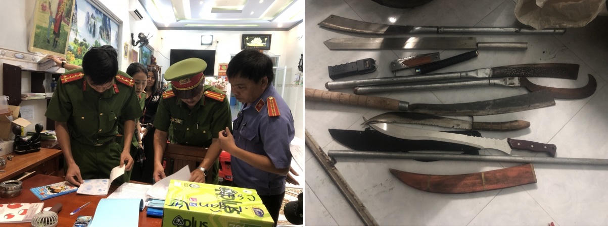 Quá trình khám xét nơi ở của vợ chồng Hân, cơ quan Công an đã thu giữ một số biên nhận cho vay tiền, 04 dao bằng kim loại (kiếm nhật, mã tấu, dao găm), 01 gậy điện, 01 dao bấm, 01 gậy ba khúc, 08 dao tự chế và 01 tuýt sắt; 105 triệu đồng là tiền gốc và tiền lãi thu trong ngày của những người vay tiền, 11 điện thoại di động, 02 xe mô tô và một số giấy tờ khác có liên quan.