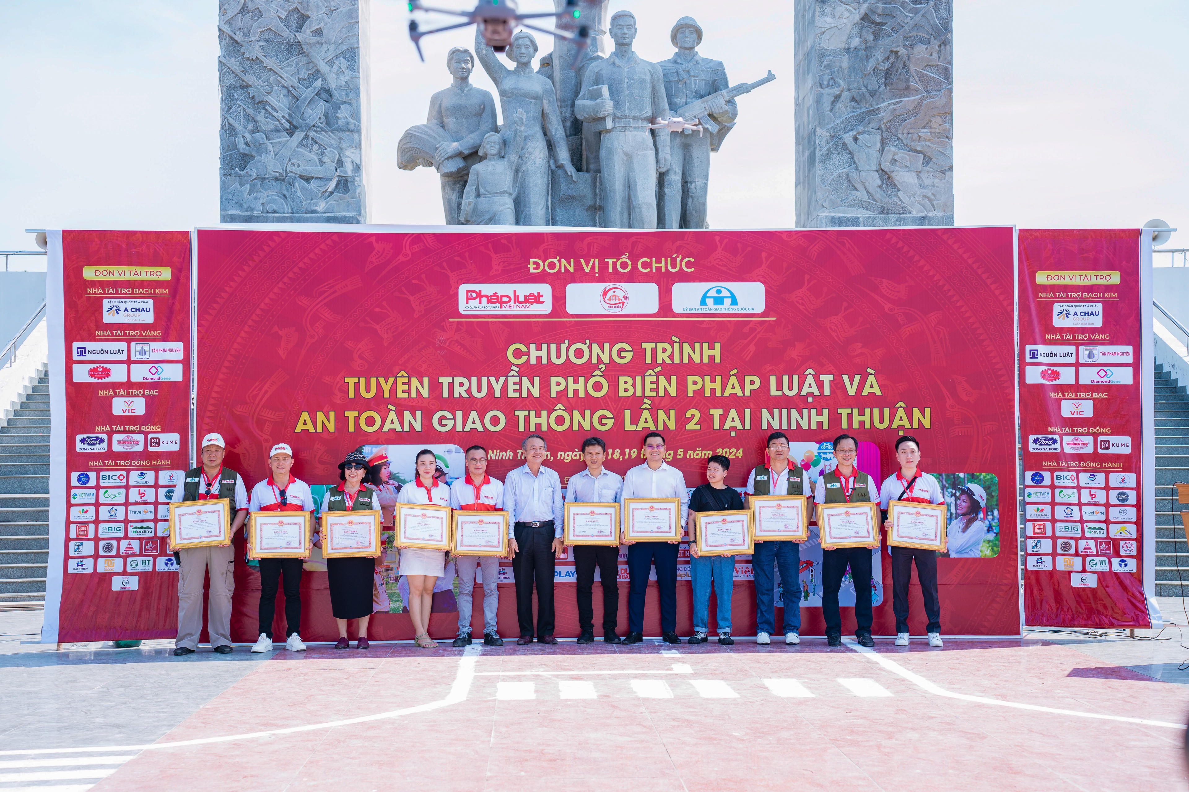 Ban ATGT tỉnh Ninh Thuận cũng đã trao tặng giấy khen cho 40 cá nhân và gửi lời cảm ơn sâu sắc nhất tới Báo Pháp luật Việt Nam, các đơn vị doanh nghiệp và cá nhân đã đồng hành tổ chức một chương trình tuyên truyền, phổ biến pháp luật đầy tính nhân văn.