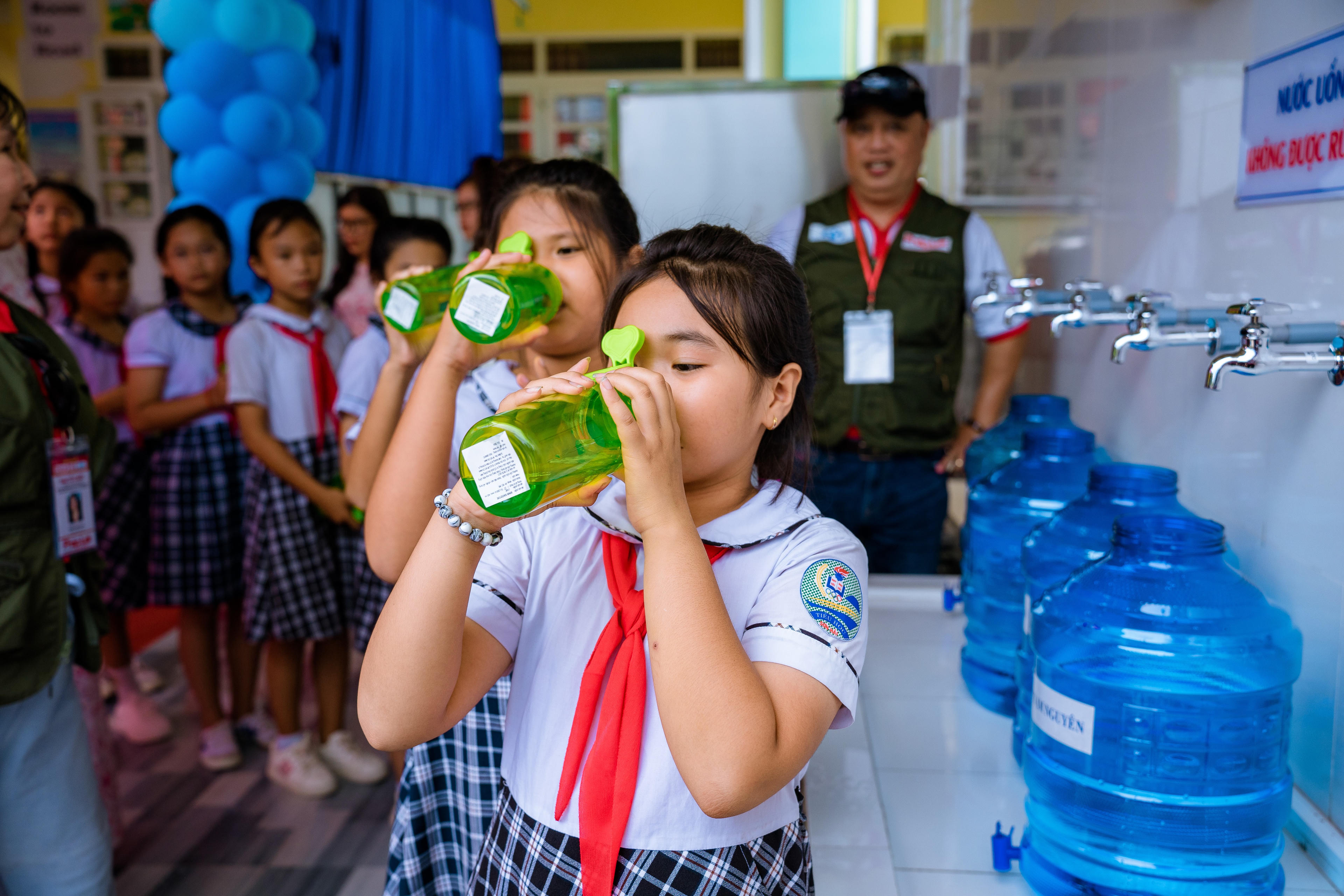 Ban tổ chức chương trình trao Hệ thống lọc nước cho đại diện các trường. |