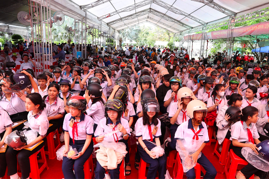 2.250 mũ bảo hiểm được trao tận tay các em học sinh |