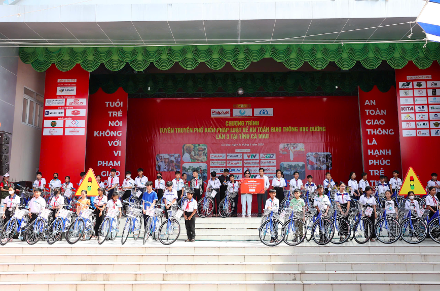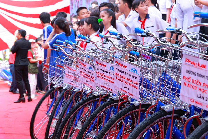 BTC trao xe đạp cho các em học sinh có hoàn cảnh khó khăn liên quan đến tai nạn giao thông trên địa bàn tỉnh Cà Mau. |
