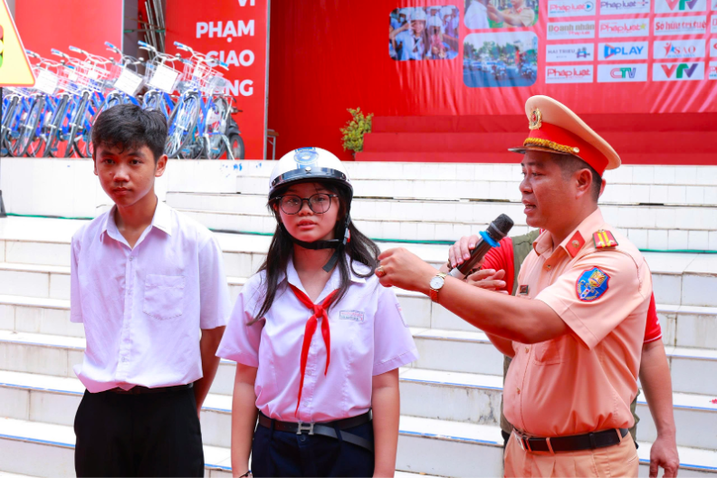 Tại chương trình, đại diện Phòng Cảnh sát giao thông – Công an tỉnh Cà Mau đã trực tiếp hướng dẫn học sinh kiến thức và kỹ năng về an toàn giao thông, thông qua các tình huống thực tế mô phỏng trên sa hình, kết hợp tuyên truyền trực quan sinh động và dễ hiểu. Phần trình diễn 10 tình huống vi phạm giao thông do các cán bộ CSGT thể hiện đã thu hút sự quan tâm, hào hứng của hàng trăm học sinh tham dự.