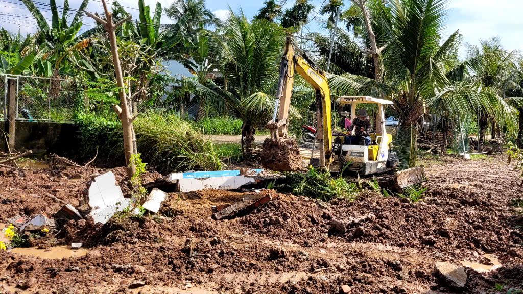 Trong quá trình thi công đào móng để đóng cọc cừ tràm xây dựng nhà văn hóa ấp Song Phú, xã Phú Đức, đội thi công phát hiện 3 bộ hài cốt được quấn trong túi nilon.