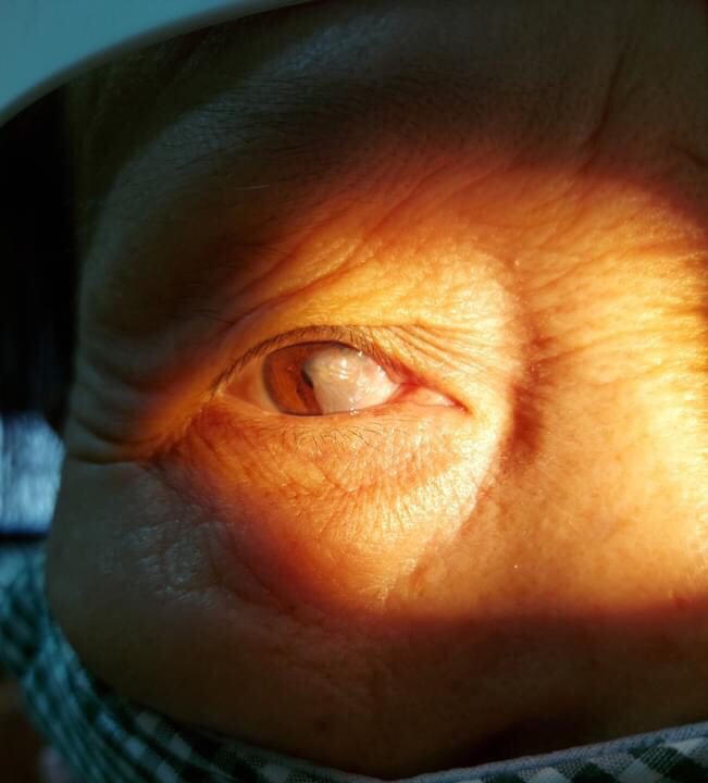 Các bác sĩ chẩn đoán, mộng mắt bên phải đã bò qua đồng tử, che kín hết lỗ đồng tử của bà M. Người bệnh có chỉ định phẫu thuật cắt mộng, ghép kết mạc rìa tự thân. Sau phẫu thuật 1 ngày, bệnh nhân nhìn tốt, không đau, chuẩn bị được ra viện.