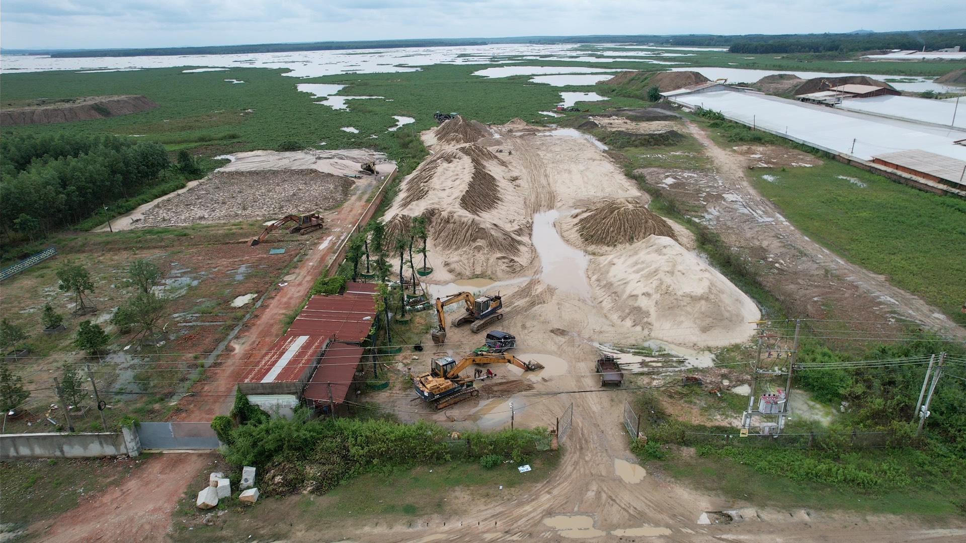 Hàng trăm bãi cát khổng lồ nằm ngổn ngang, vô tội vạ ven lòng hồ Biển Lạc. |
