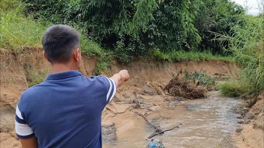 Những cỗ máy “ăn cát” hoạt động ngày đêm khiến dòng nước ào ạt đổ về. Đường sá, hoa màu, cây cối trôi theo luồng cát làm cho nương rẫy tan hoang.