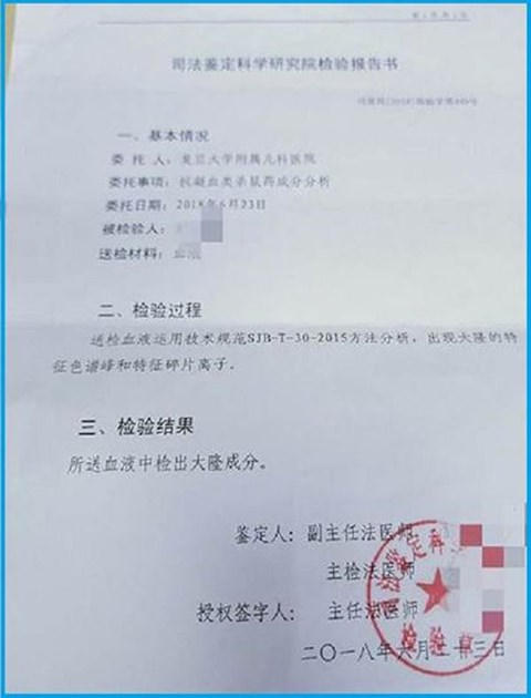 | Kết quả xét nghiệm từ Viện nghiên cứu Khoa học phát hiện có chất chống đông trong máu. |