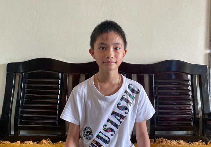 Tuấn Khang, nam sinh đẩy xe đưa bạn đến trường suốt bốn năm, tại nhà riêng ở xã Giang Biên, sáng 13/6. Ảnh: Quỳnh Nguyễn