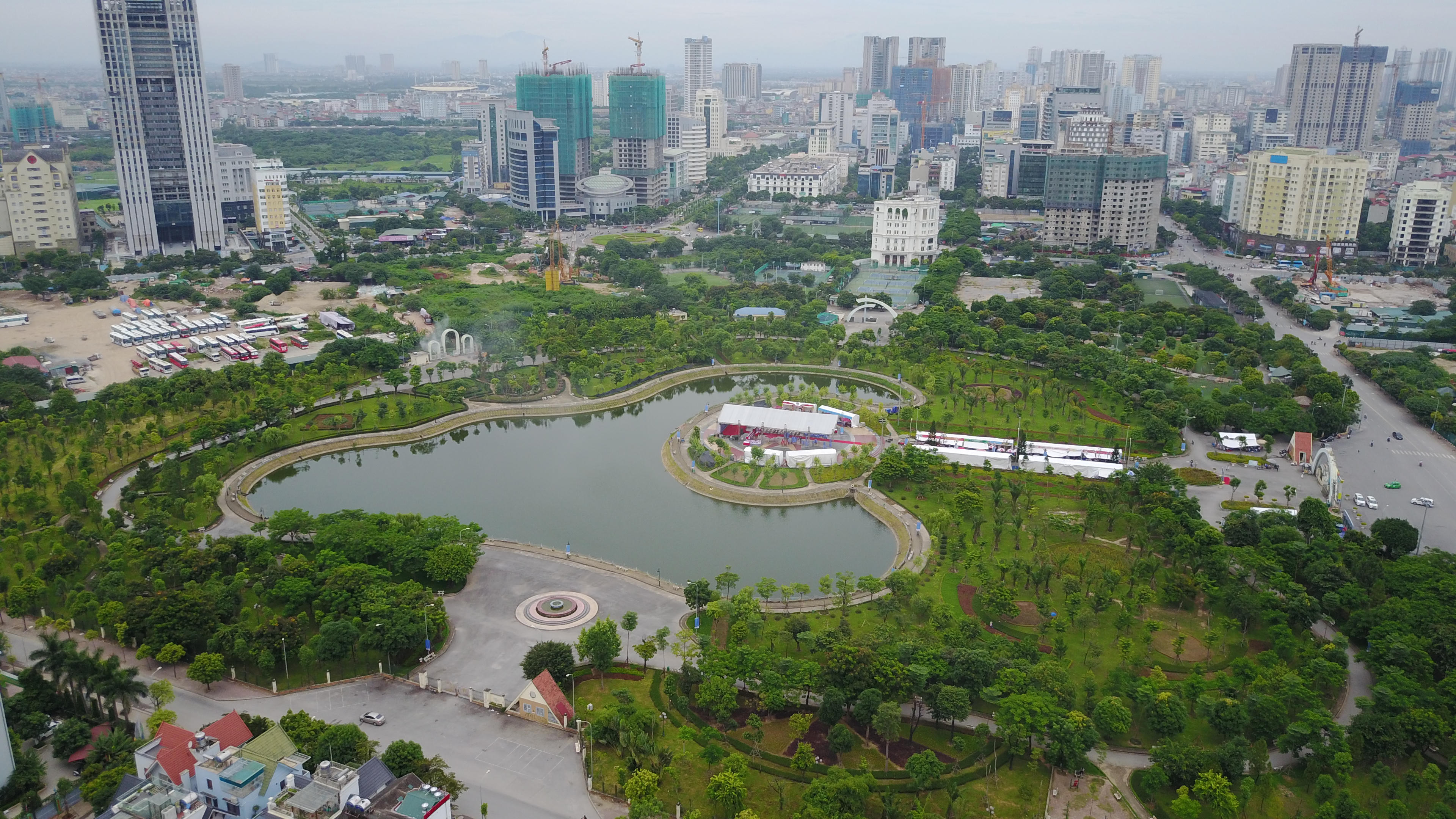 | Công viên Cầu Giấy - công trình phúc lợi, "lá phổi xanh" giữa lòng đô thị Cầu Giấy với nhiều cao ốc chọc trời |