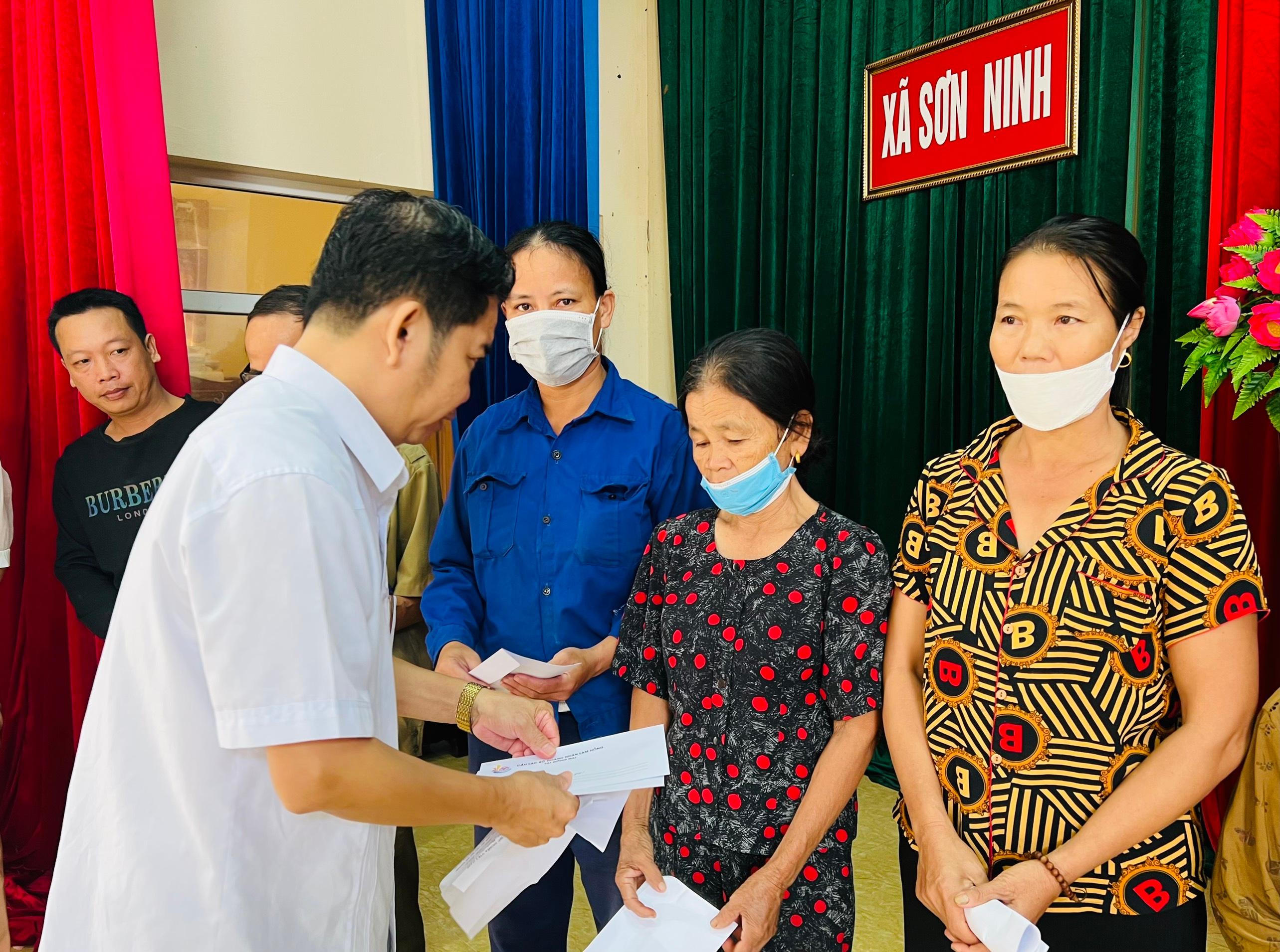 Tại huyện Thanh Chương, đoàn đã trực tiếp đến thăm hỏi, động viên chia sẻ và trao tận tay bà con 150 phần quà, với trị giá 1 triệu đồng mỗi phần quà cho nhân dân 3 xã Thanh Mai, Thanh Lương và Thanh Mỹ.