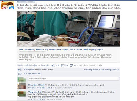 Nhiều nickname khác cũng lên án một cách mãnh liệt, đề nghị xử lý hành vi đánh đập con đến 99% có nguy cơ tử vong một cách nghiêm khắc. Nickname Tuyen Le bình luận: "Đề nghị Pháp luật trừng trị thật nặng với những người cha tan ác để làm gương cho những kẻ xấu luôn dùng bạo lực gia đình nhất là với trẻ em".