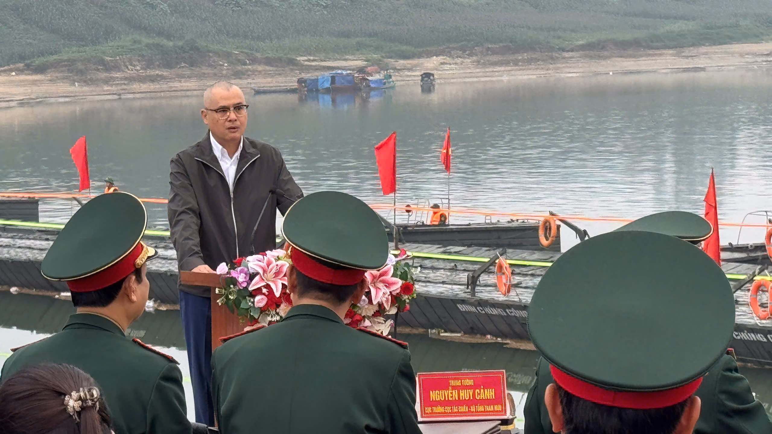 Phát biểu tại buổi lễ, thay mặt Quân ủy Trung ương và Bộ Quốc phòng, Đại tướng Nguyễn Tân Cương biểu dương tinh thần trách nhiệm, sự tận tụy và những đóng góp của cán bộ, chiến sĩ và các lực lượng tham gia nhiệm vụ bắc cầu phao Đoan Hùng. Đại tướng khẳng định, đây không chỉ là công trình giao thông có ý nghĩa cấp thiết mà còn là biểu tượng sinh động của tinh thần trách nhiệm và nghĩa tình quân dân bền chặt.