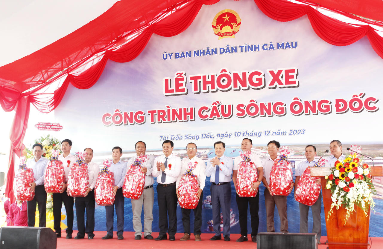 Tham dự lễ thông xe công trình cầu sông Ông Đốc, có ông Lê Minh Khái - Bí thư Trung ương Đảng, Phó Thủ tướng Chính phủ; ông Nguyễn Tiến Hải - Ủy viên Trung ương Đảng, Bí thư Tỉnh ủy, Chủ tịch HĐND tỉnh Cà Mau; ông Huỳnh Quốc Việt - Ủy viên dự khuyết BCH TW Đảng, Phó Bí thư Tỉnh ủy, Chủ tịch UBND tỉnh Cà Mau,… lãnh đạo Bộ, Ngành Trung ương; Nguyên lãnh đạo tỉnh Cà Mau; lãnh đạo địa phương và bà con Nhân dân.