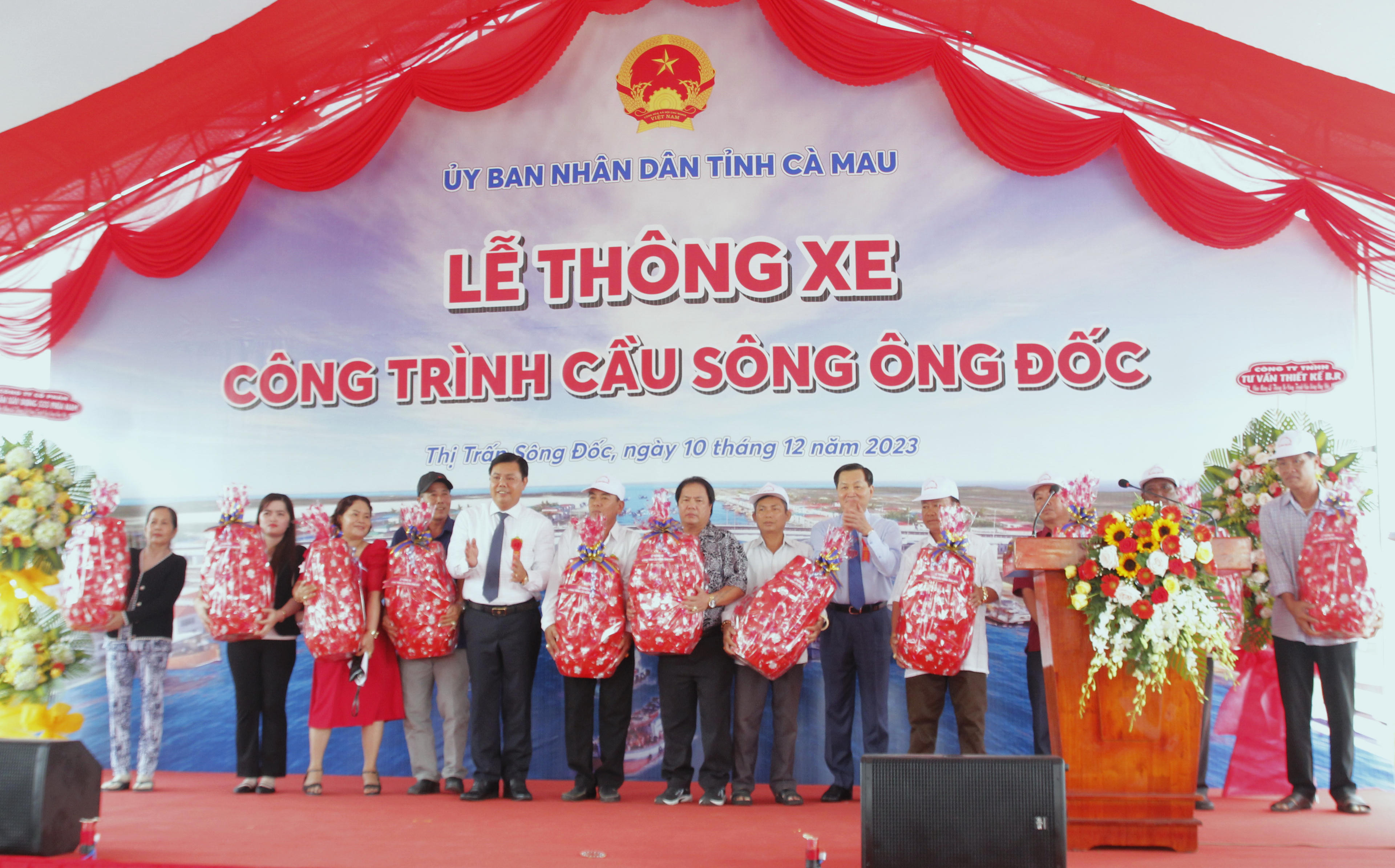 Nhân dịp này, Phó Thủ tướng Chính phủ; Bí thư Tỉnh ủy Cà Mau trao quà cho chủ đầu tư, các nhà thầu, chính quyền địa phương và người dân thị trấn Sông Đốc có thành tích tiêu biểu trong công tác GPMB; Chủ tịch UBND tỉnh Cà Mau tặng Bằng khen cho các tập thể có thành tích đóng góp xuất sắc trong công trình cầu sông Ông Đốc.