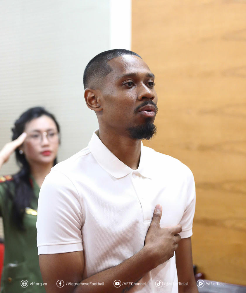Nhân dịp này, Quang Vinh bày tỏ lòng biết ơn tới Chủ tịch nước, VFF, Sở Tư pháp và Công an TP Hà Nội đã tin tưởng, hỗ trợ anh hoàn thiện thủ tục nhập quốc tịch. “Đây không chỉ là vinh dự mà còn là lời hứa và trách nhiệm. Tôi sẽ dùng tất cả tài năng, nhiệt huyết để góp sức cho màu cờ sắc áo, để mỗi bàn thắng, từng đường chuyền đều thể hiện niềm tự hào dân tộc”, Quang Vinh khẳng định.