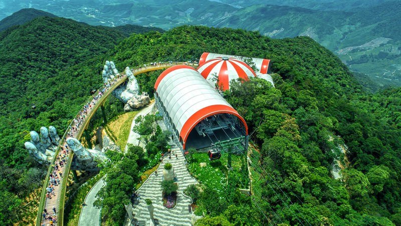 Bức hình Cầu Vàng của Bà Nà Hills, Đà Nẵng, đã được Insider chọn làm hình đại diện của bài báo. Rực rỡ, ấn tượng như một dải lụa vàng được nâng đỡ bởi đôi bàn tay khổng lồ, Cầu Vàng nổi bật trên nền rừng xanh thẫm của vùng núi Chúa.