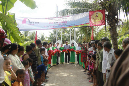 | Niềm hân hoan của bà con nhân dân xã Hòa Lợi khi tham gia khánh thành cây cầu dây văng do nhãn hàng Trà Thảo Mộc Dr Thanh tài trợ |