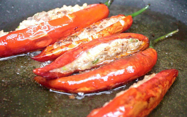 Cay cay với món ớt sừng nhồi thịt heo bằm