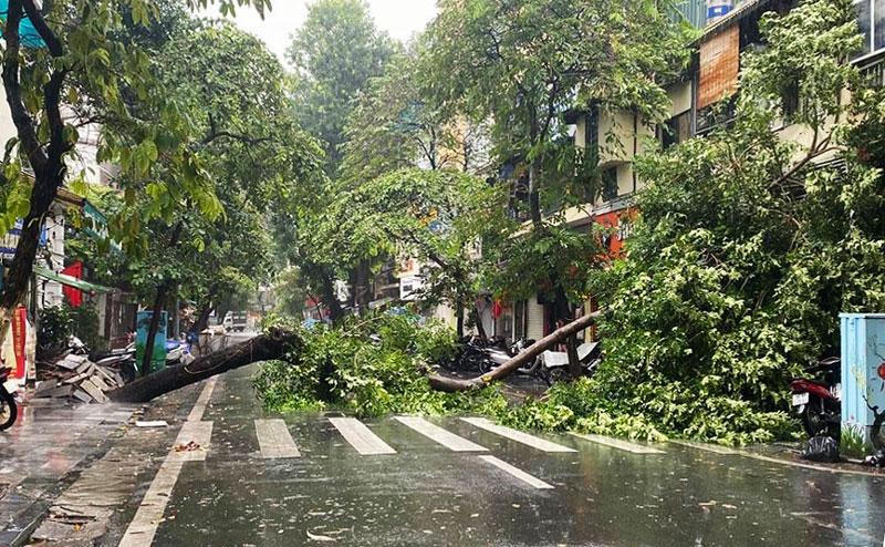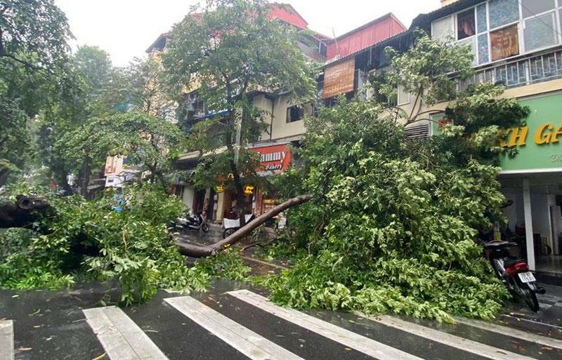 Cây cổ thụ bất ngờ bật gốc chắn ngang phố cổ Hà Nội