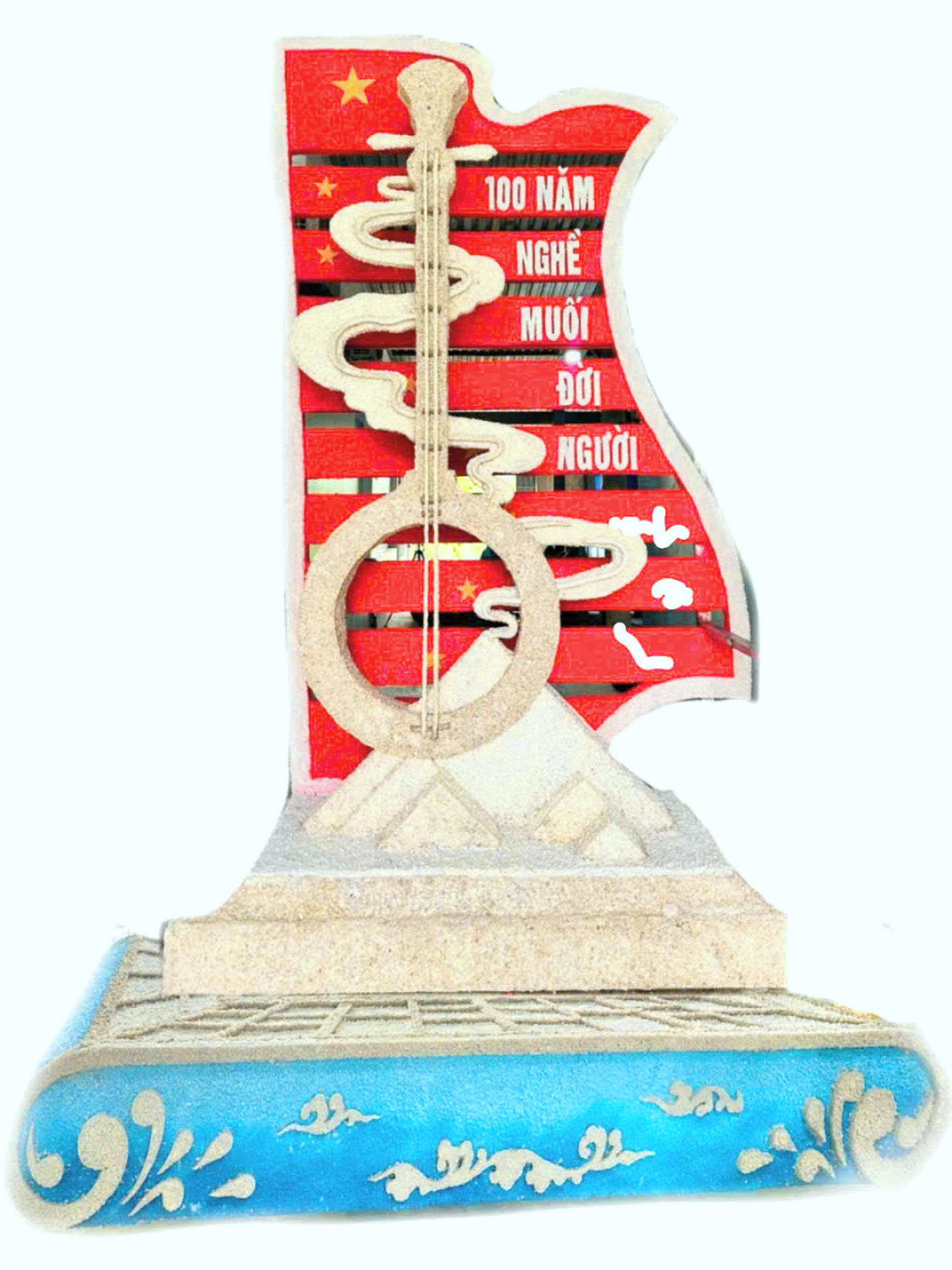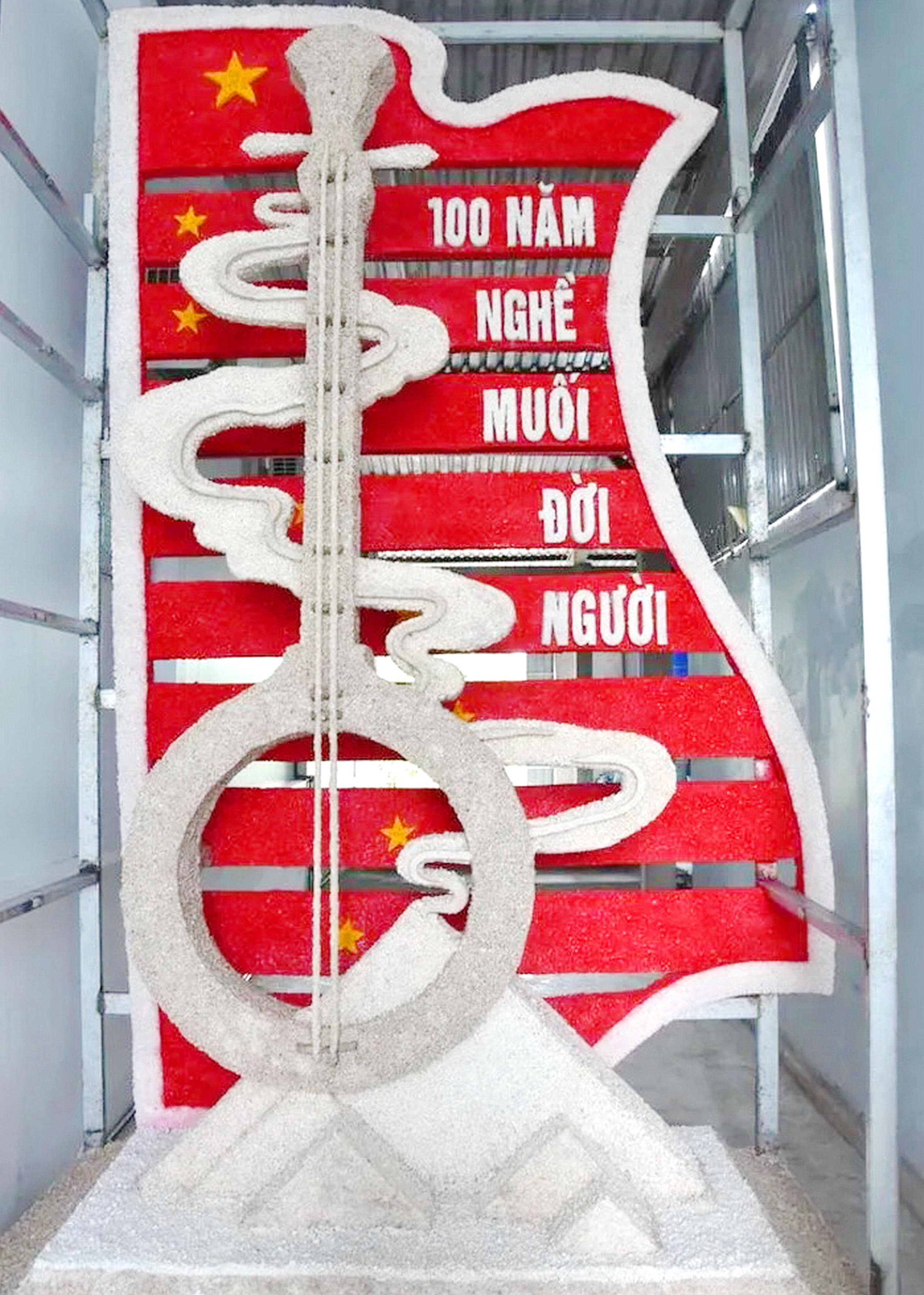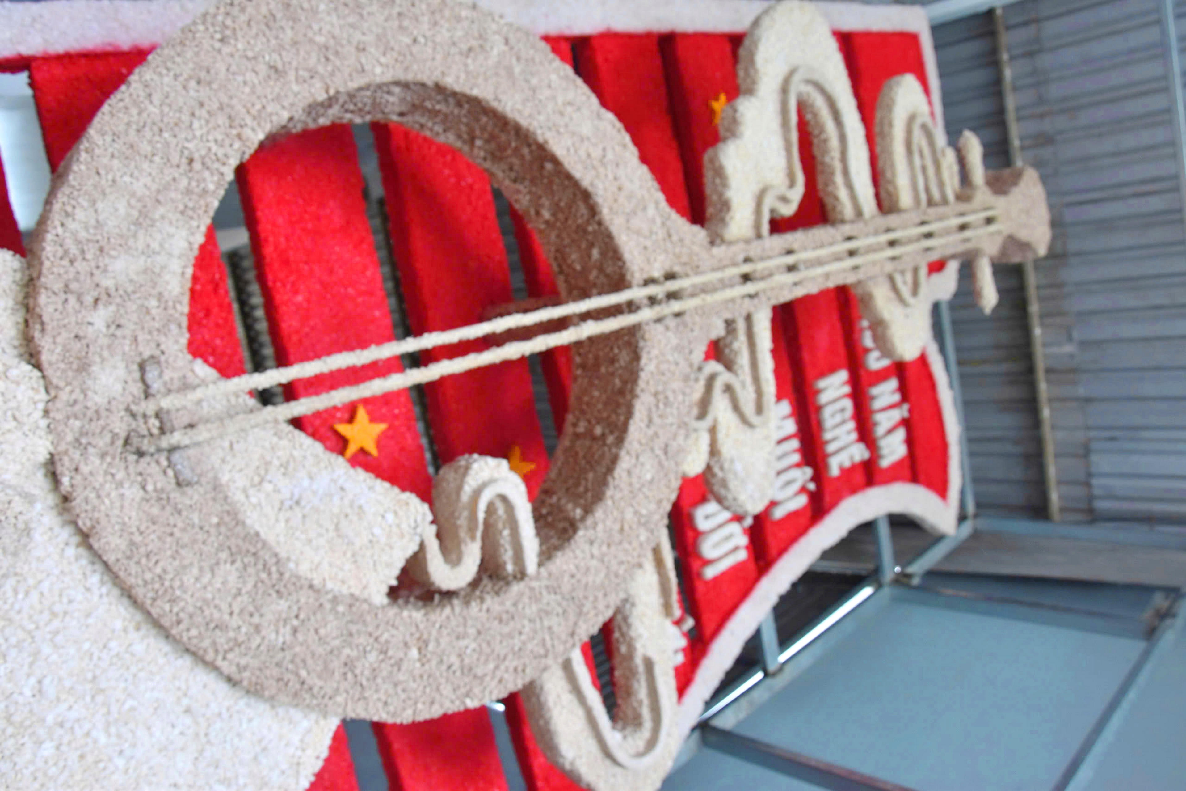 Cây đàn kìm cách điệu bằng muối có chiều cao khoảng 4 mét, dài hơn 3,5 mét, nặng khoảng 500kg, tác phẩm sử dụng những hạt muối địa phương (huyện Đông Hải) và cố định bằng các khung sắt…