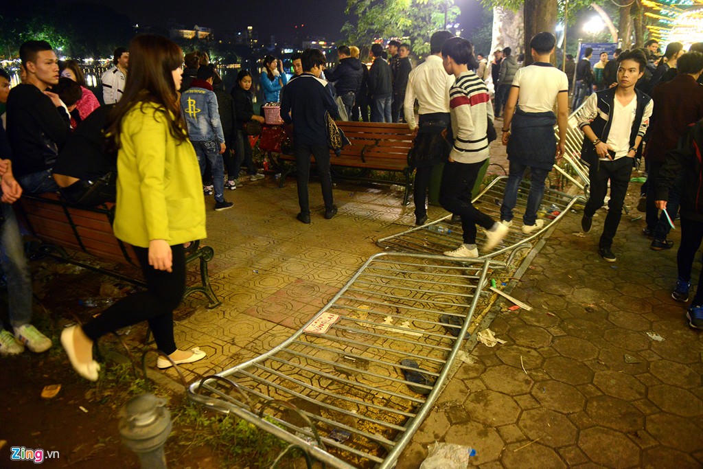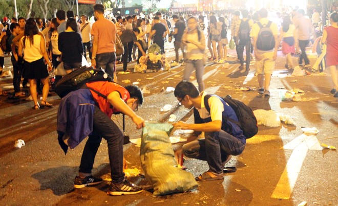Sau phút Giao thừa, biển người rời đi, trong đó, phần lớn là thanh niên, vứt giấy báo, vỏ chai... ngổn ngang trên những con đường trung tâm Hà Nội, TP HCM. Rào chắn bị xô đổ, cỏ cây dập nát sau dưới chân bao người. Số ít bạn trẻ chạnh lòng trước cảnh tượng này, dừng lại dọn rác, trả lại vẻ sạch sẽ thanh lịch cho phố phường.