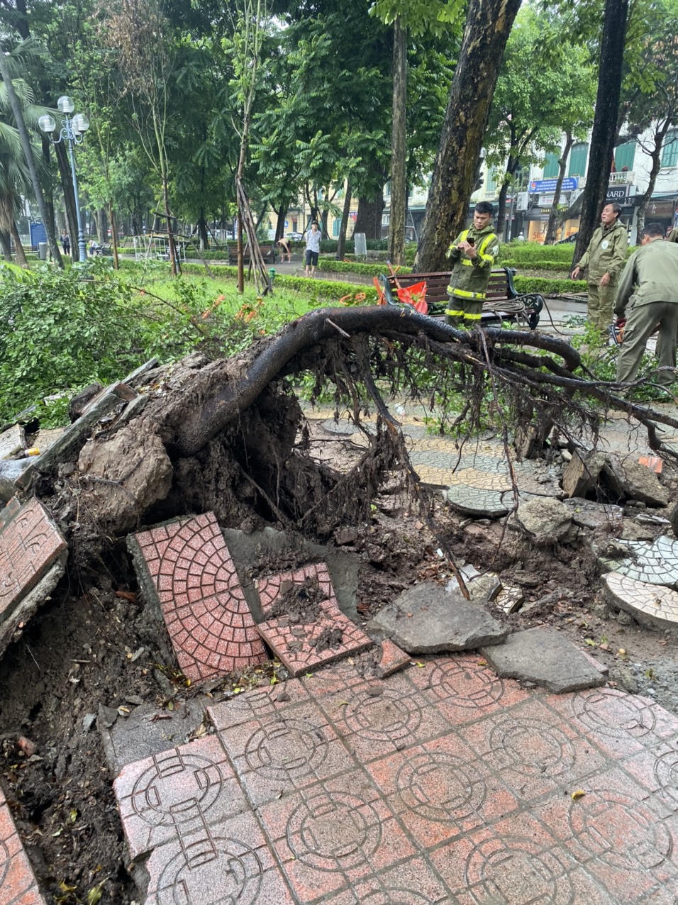 Một số hình ảnh về hiện trường cây xanh bật gốc ở Bờ Hồ trong sáng 15/6:
