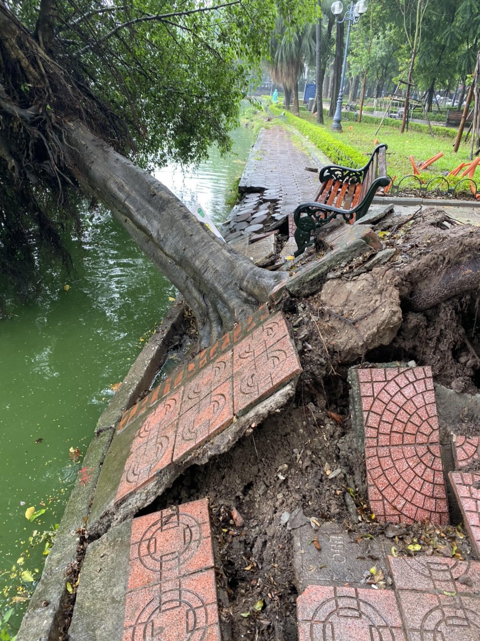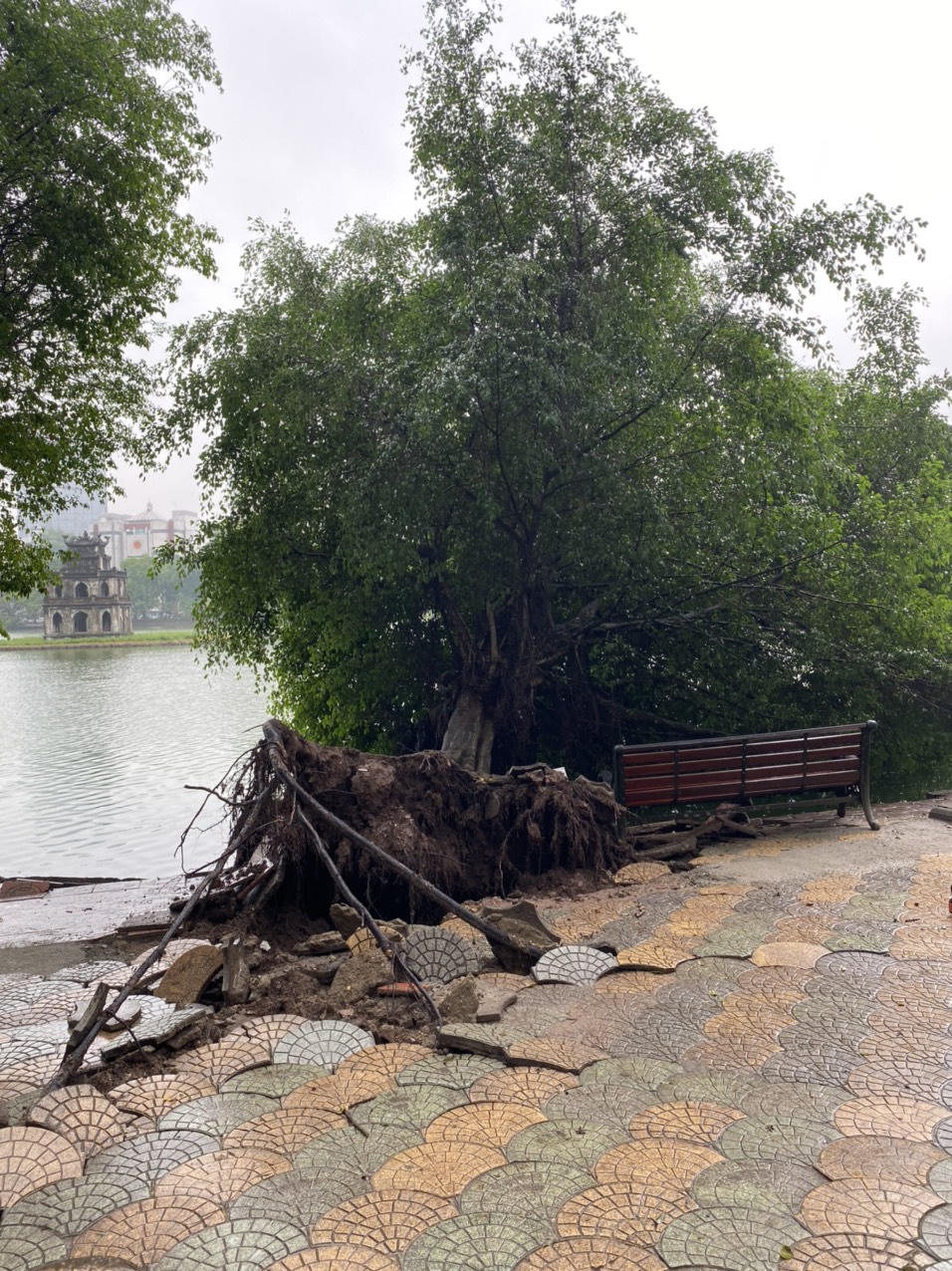 Bờ Hồ vẫn đang trong tình trạng sạt lở nghiêm trọng, hệ lụy kéo theo sẽ là các cây xanh bị ảnh hưởng. Việc các cây xanh "không thể bén rễ sâu" đã được dư luận đặt ra. Đây chính là vấn đề khiến cho cây xanh bật gốc, dù mưa không lớn.