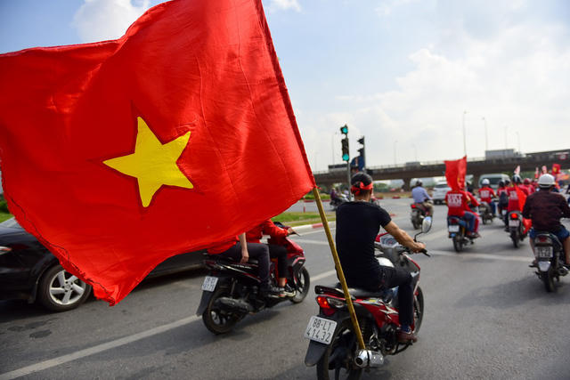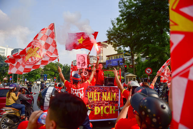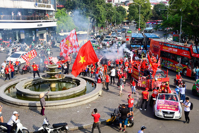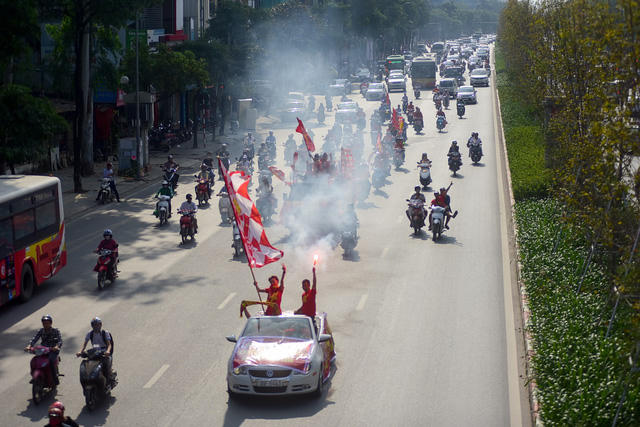 Tất cả cổ động viên đều chấp hành đúng luật lệ an toàn giao thông. Cả đoàn hô vang Việt Nam vô địch.