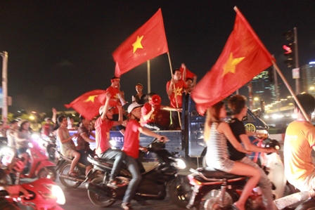 CĐV Việt Nam xuống phố ăn mừng chiến thắng