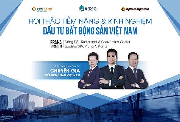 Nằm trong kế hoạch toàn cầu hóa hệ thống tiếp thị và phân phối bất động sản, 14h00 ngày 28/8/2018 tới đây, tại Trung tâm sự kiện Đông Đô - Sapa Market, thủ đô Praha, Cộng hòa Séc, CENLAND phối hợp với VEREC (Sàn liên kết của CENLAND tại Châu Âu) tổ chức hội thảo “Tiềm năng và kinh nghiệm đầu tư bất động sản Việt Nam.”