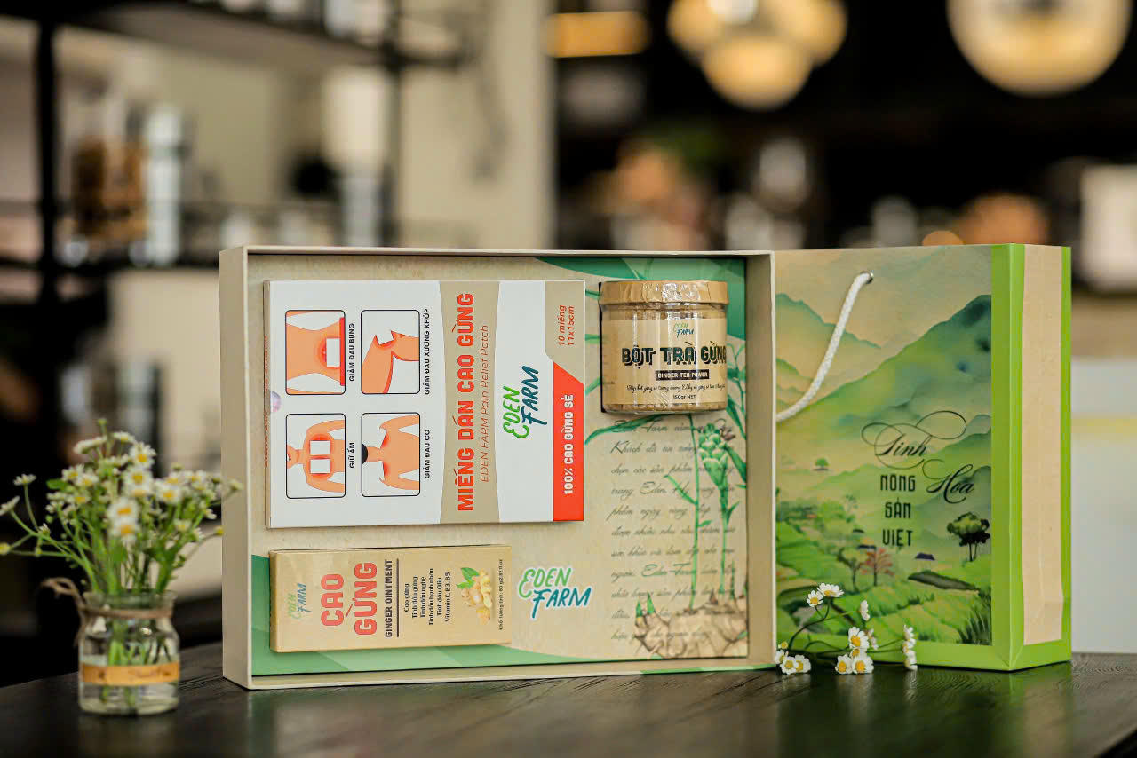 Hộp quà tặng sức khỏe được chiết xuất từ gừng của Eden Farm. |