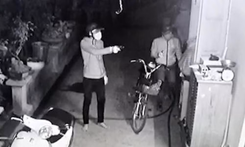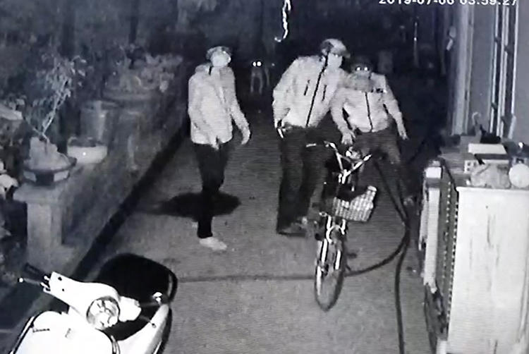 Ông Ngà kể, gần 4h ngày 6/7 vợ chồng ông bị đánh thức bởi tiếng chó sủa liên hồi. Màn hình tivi thu từ camera an ninh của gia đình cho thấy 4 thanh niên cao lớn đeo khẩu trang, đội mũ bảo hiểm, đeo kính; một tên cầm vật giống súng; đang đi lại dòm ngó trước cửa nhà. Nghĩ là trộm, ông Ngà bật đèn đánh động nhưng nhóm này không có dấu hiệu bỏ đi.