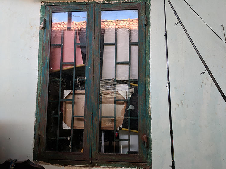 Cửa sổ phòng con trai ông Ngà bị nhóm thanh niên nạy, vào trong khống chế cậu bé. Ảnh: Minh Tân. |