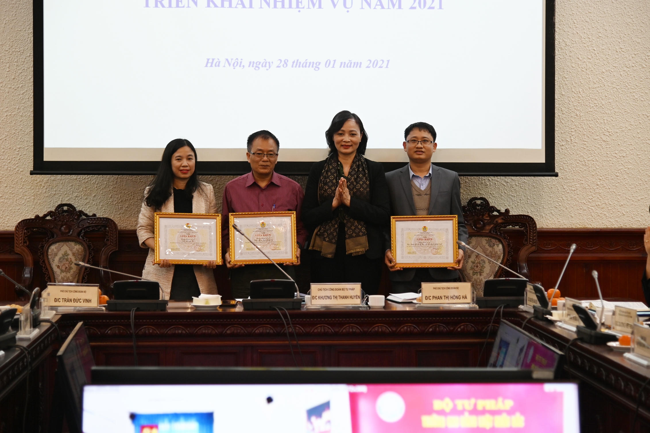 Nhân dịp này, Hội nghị đã công bố Quyết định công nhận 14 công đoàn cơ sở, tổ công đoàn trực thuộc đạt tiêu chuẩn “Hoàn thành xuất sắc nhiệm vụ”, 20 công đoàn cơ sở, tổ công đoàn trực thuộc đạt tiêu chuẩn “Hoàn thành nhiệm vụ” năm 2020; quyết định tặng Giấy khen của Ban Thường vụ Công đoàn Bộ cho 11 tập thể, 116 cá nhân có thành tích xuất sắc trong phong trào thi đua Xây dựng cơ quan và tổ chức công đoàn vững mạnh năm 2020; tặng Giấy khen chuyên đề “Giỏi việc nước, đảm việc nhà” cho 2 tập thể, 31 cá nhân.