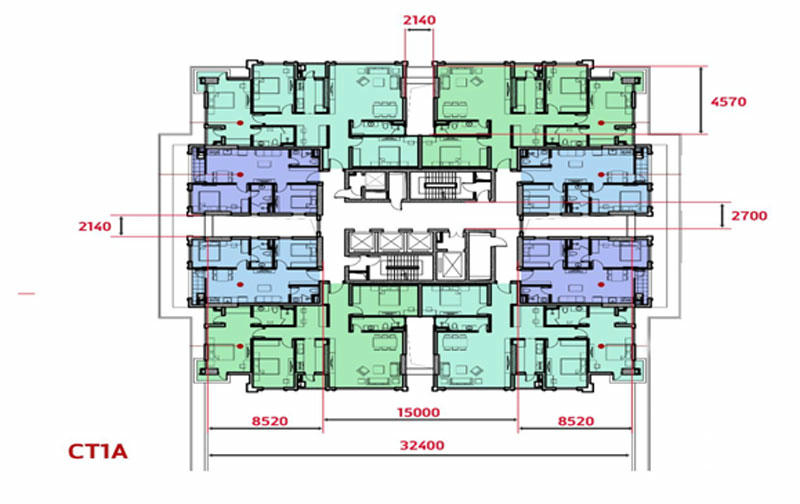 Chưa hết, việc tối ưu trong thiết kế còn được thể hiện từ cửa căn hộ đến khu vực thang máy rất gần, tối đa cũng chỉ là 9m để đến thang máy gần nhất, đảm bảo cư dân khi di chuyển giao thông theo trục ngang được nhanh chóng, rút ngắn khoảng cách và thời gian di chuyển từ căn hộ đến thang máy.