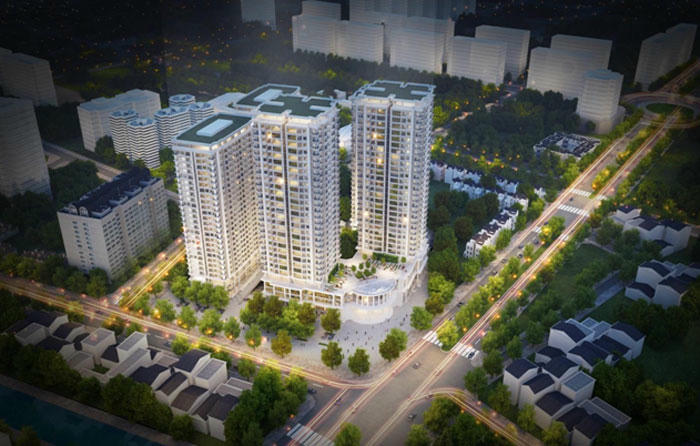 Trong đó, 02 tầng hầm của công trình được bố trí để xe cho cư dân và các hạ tầng kỹ thuật. Tầng 1, được xây dựng với chiều cao 4.5m, một phần diện tích sàn được sử dụng để làm không gian sảnh cho khối dịch vụ, không gian sảnh cho cư dân tòa nhà, không gian sảnh dành cho giao thông tòa nhà, còn lại là khoảng không gian dành cho khối dịch vụ, thương mại. Tầng 2, được xây dựng với chiều cao 3.9m, dành riêng cho khối dịch vụ thương mại công cộng, khối văn phòng cho thuê, phần phía trên sát sàn tầng kỹ thuật, làm không gian kỹ thuật tòa nhà.