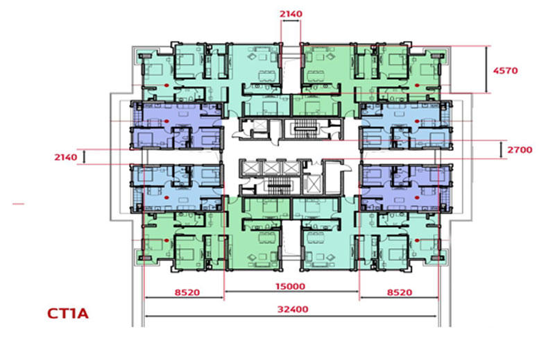 Cùng là chung cư cao tầng gần khu vực, nếu như tòa nhà chung cư của các chủ đầu tư khác, mật độ xây dựng căn hộ khoảng 16 căn/sàn/tầng, thì tại tòa nhà CT2, CT1A, CT1B của Dự án Iris Garden có mật độ xây dựng chỉ 8 căn/sàn/tầng, với diện tích căn 2 phòng ngủ là 60,7m2 và căn 3 phòng ngủ là 131,8m2. Với mật độ xây dựng thấp, sảnh chờ thang máy rộng là nhân tố trọng yếu, tránh tình trạng quá tải và thời gian chờ đợi thang máy, khi cư dân được sử dụng hệ thống giao thông đứng với 3 thang máy mang thương hiệu Schindler Thụy Sỹ cho một sàn/trên một tòa nhà và vận tốc thang máy 3m/giây.