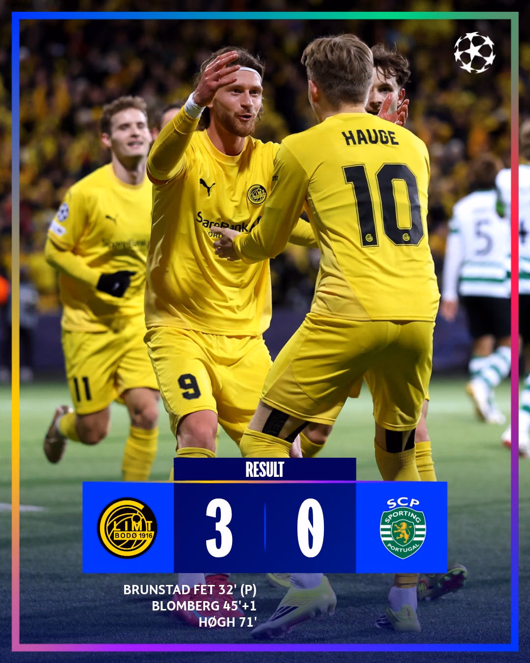 Hành trình kỳ diệu đầu tiên của Bodø/Glimt tại Champions League tiếp tục khi họ giành chiến thắng thứ năm liên tiếp tại giải đấu và tiến gần đến vòng tứ kết nhờ màn trình diễn xuất sắc ở trận lượt đi gặp Sporting.