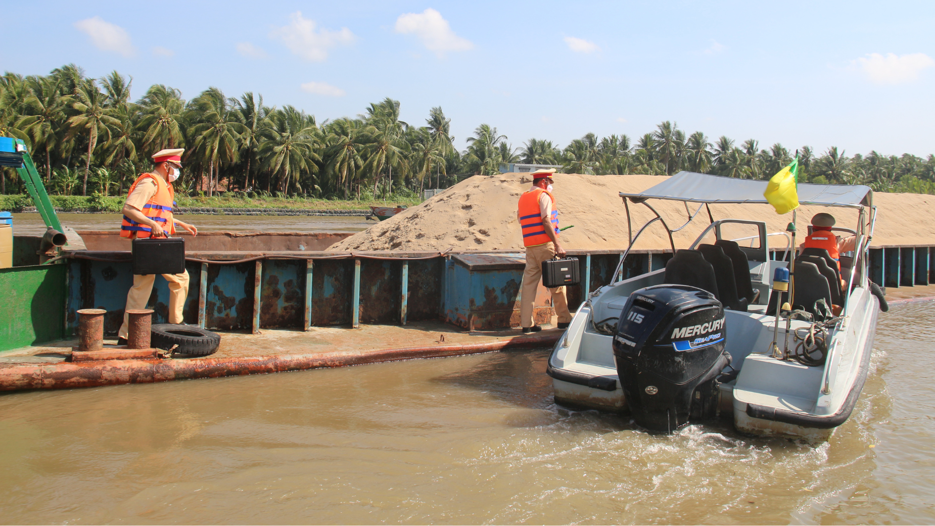 Theo chân tổ công tác tuần tra kiểm soát trên tuyến kênh Chợ Gạo, phóng viên không ghi nhận được trường hợp nào vi phạm về nồng độ cồn khi điều khiển phương tiện thủy nội địa. Về trang bị áo phao và thiết bị phòng cháy, chữa cháy 100% phương tiện đều đảm bảo thực hiện đúng quy định, qua đó cho thấy chủ phương tiện đa phần đều ý thức được sự an toàn về người và của phương tiện.